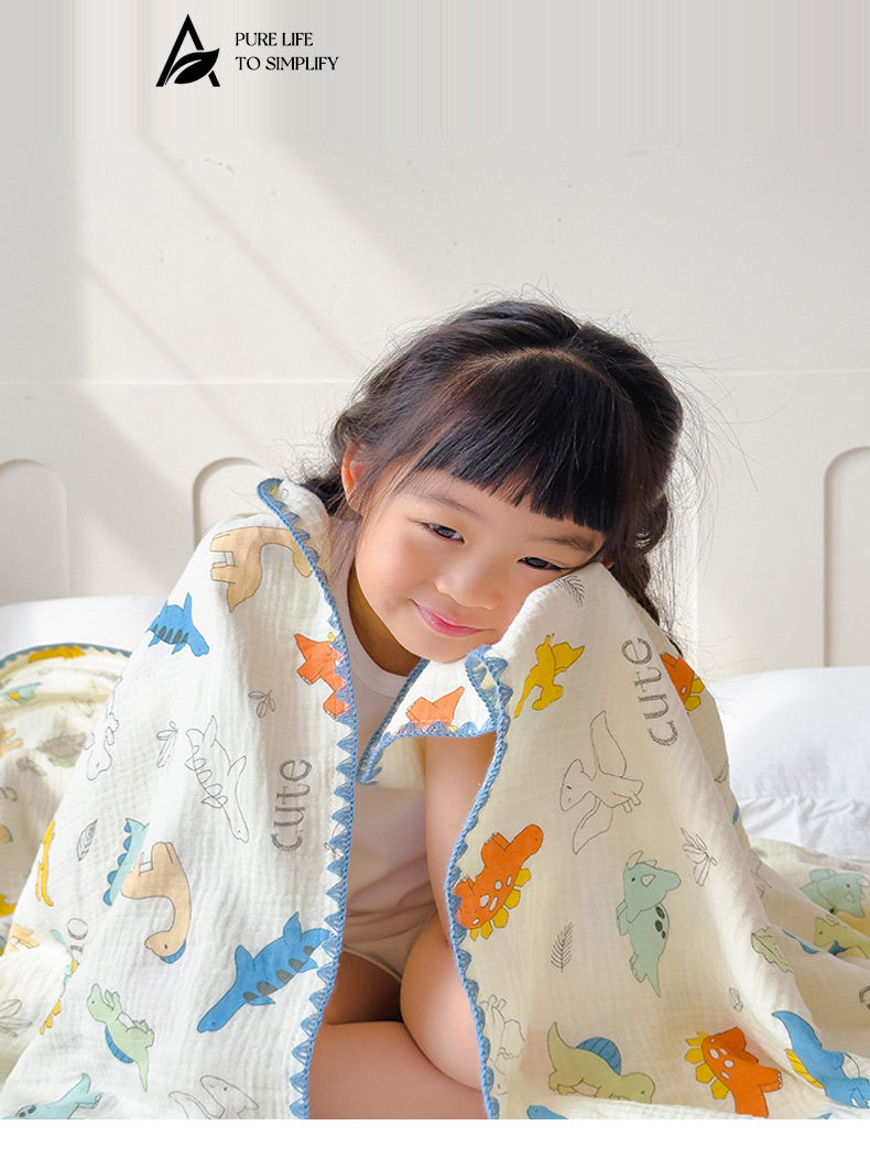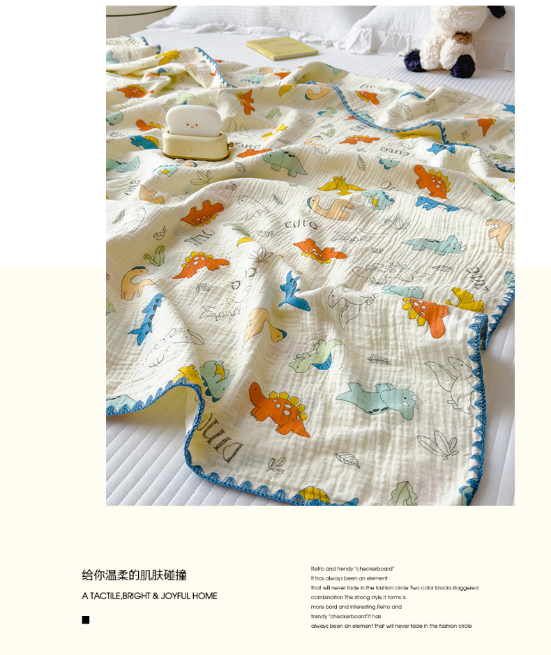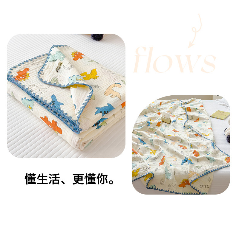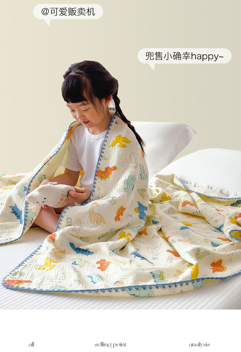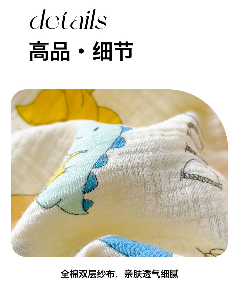 商品名称:兄弟坊 2025全棉抗菌皱皱双层纱夏被午睡毯盖毯空调毯夏凉被沙发毯 皱皱纱-恐龙岛