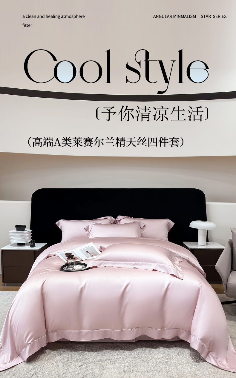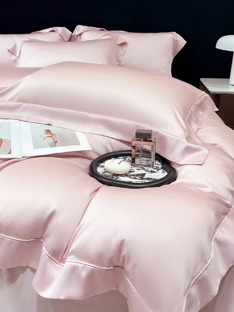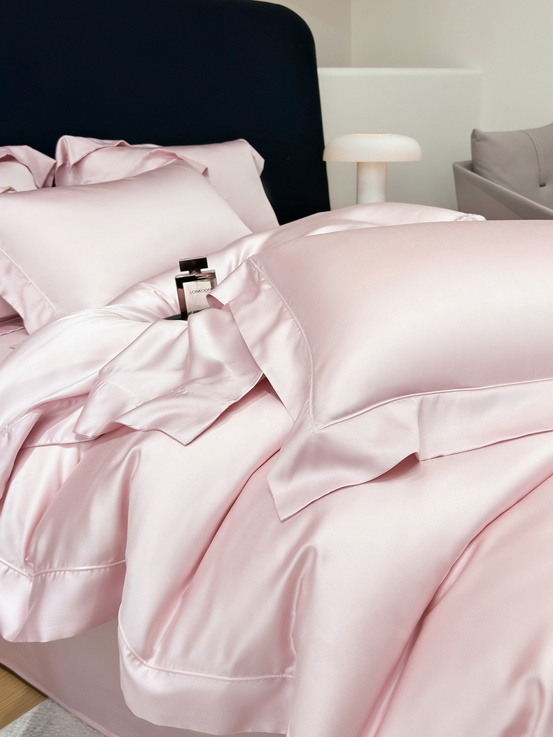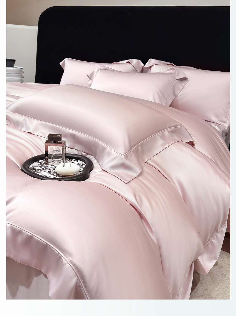 星蕴家纺 2025新款奥地利兰精天丝莱赛尔纯色埋绳款四件套-莱恩 莱恩-蔷薇粉