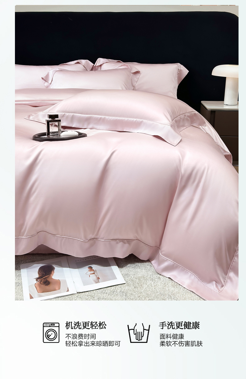 商品名称:星蕴家纺 2025新款奥地利兰精天丝莱赛尔纯色埋绳款四件套-莱恩 莱恩-蔷薇粉