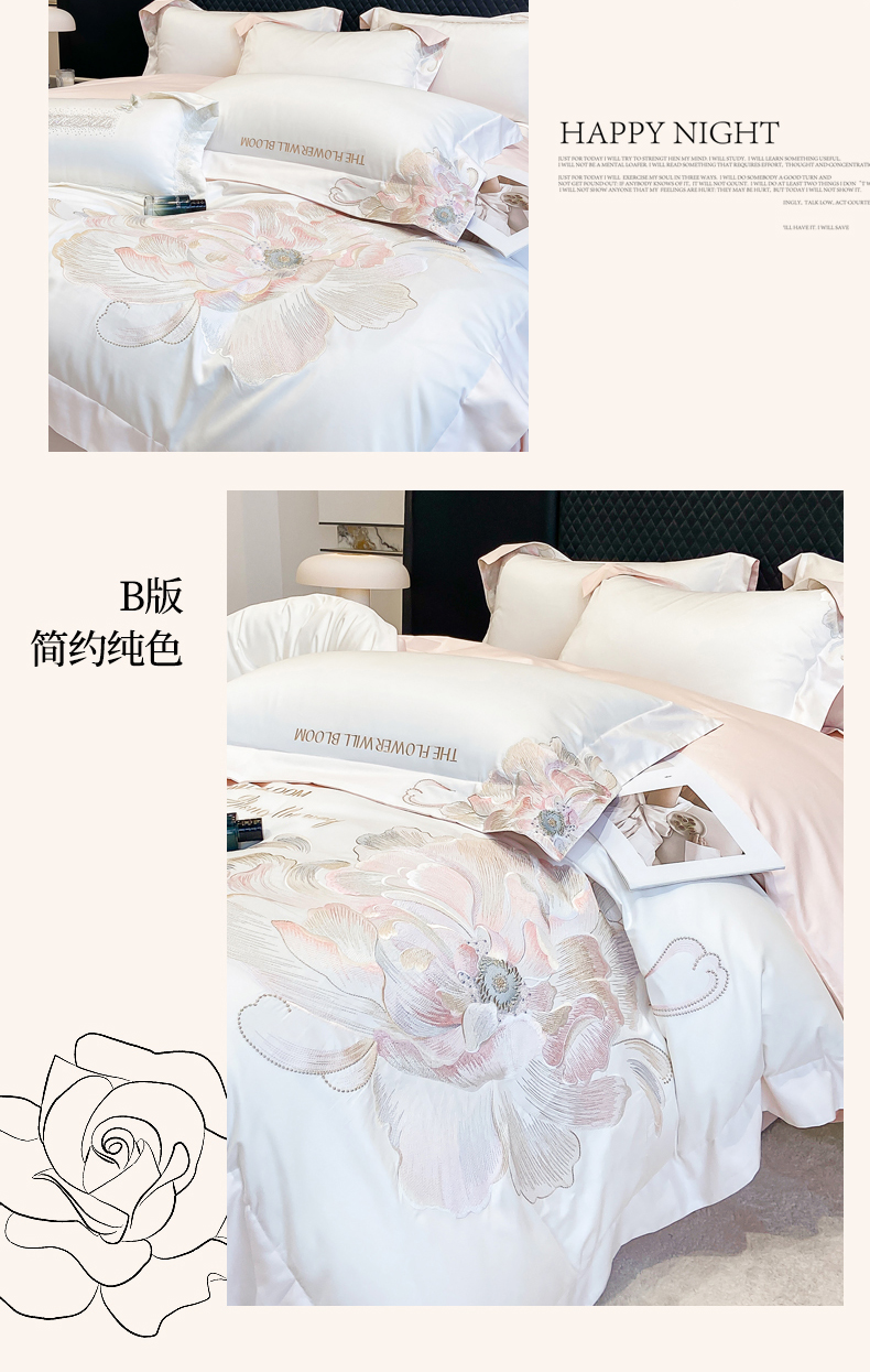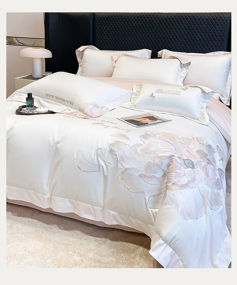 商品名称:星蕴家纺 2025新款澳棉纯棉正宗长绒棉刺绣四件套-绽放 绽放 白拼玉
