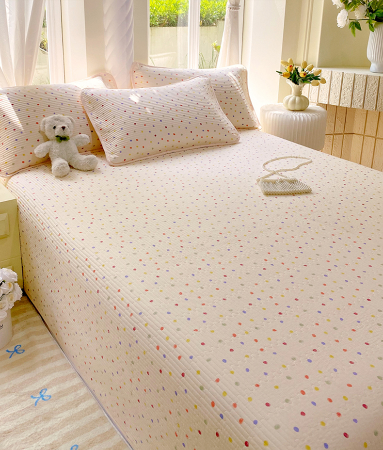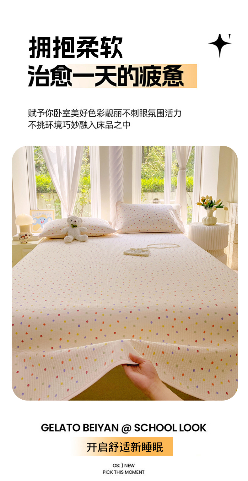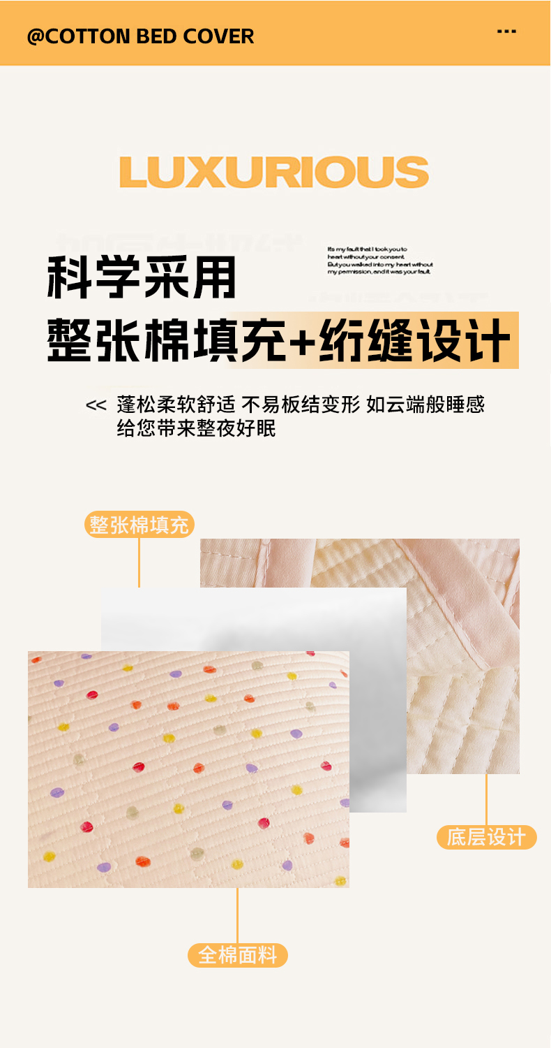 商品名称:(总)金丝兔 2025新款小清新斜纹纯棉床盖 全棉夹棉床盖 床盖三件套 榻榻米抗盖绗缝加厚床单