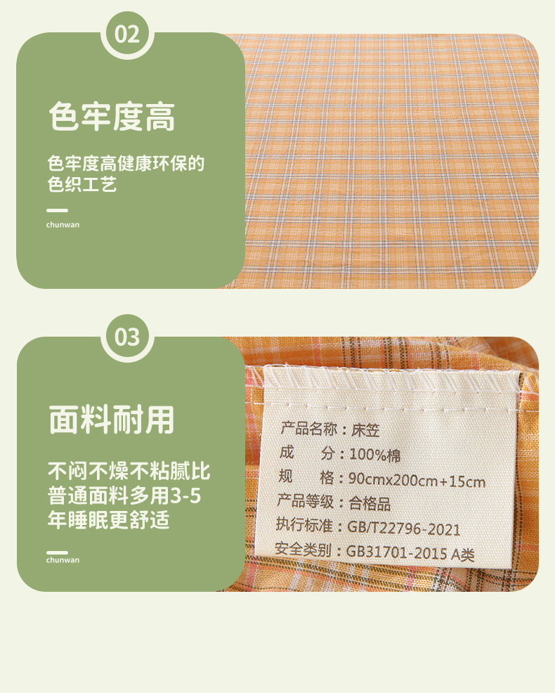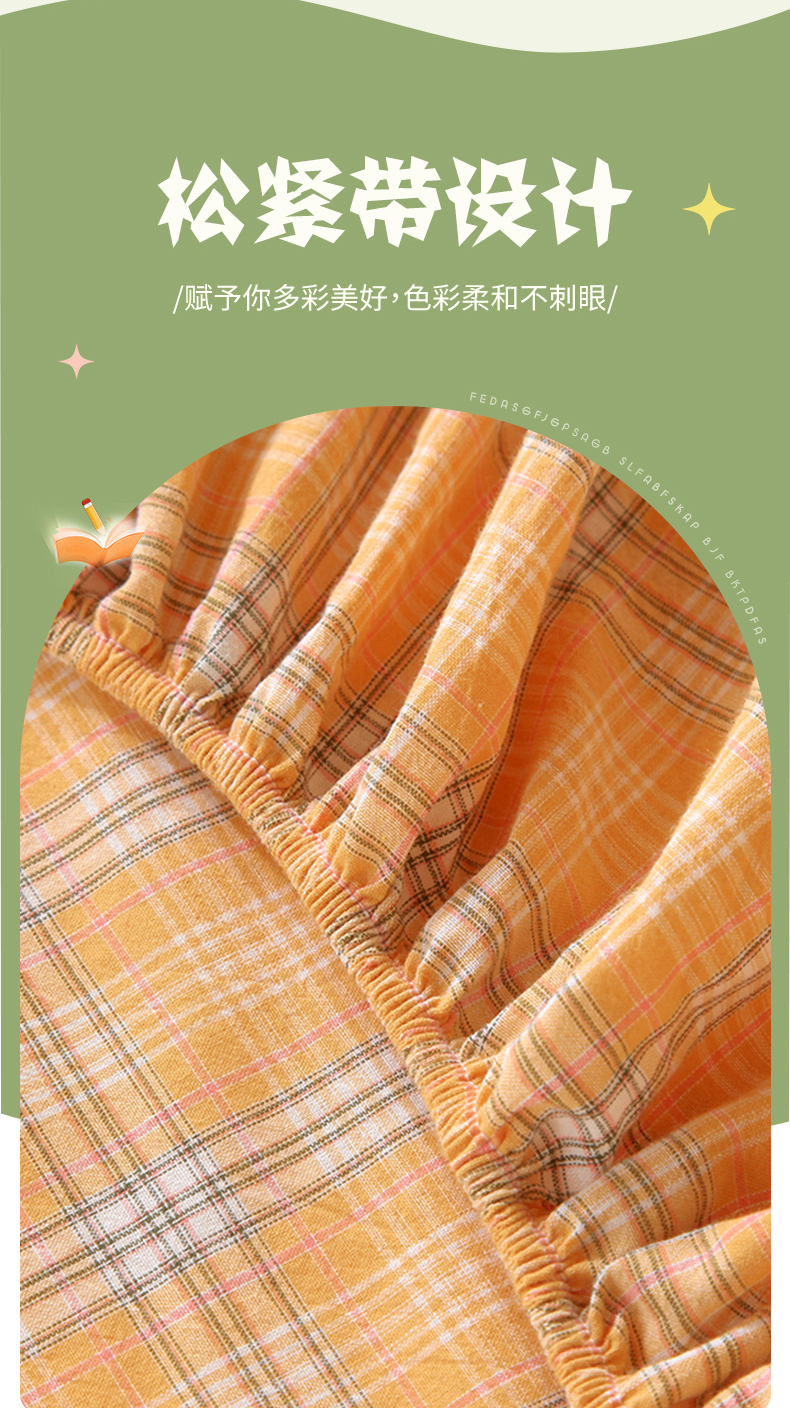 春皖家纺 2025新款学生季全棉纯棉色织AB版水洗棉单品系列-单床笠 床笠单件 素雅-黄条