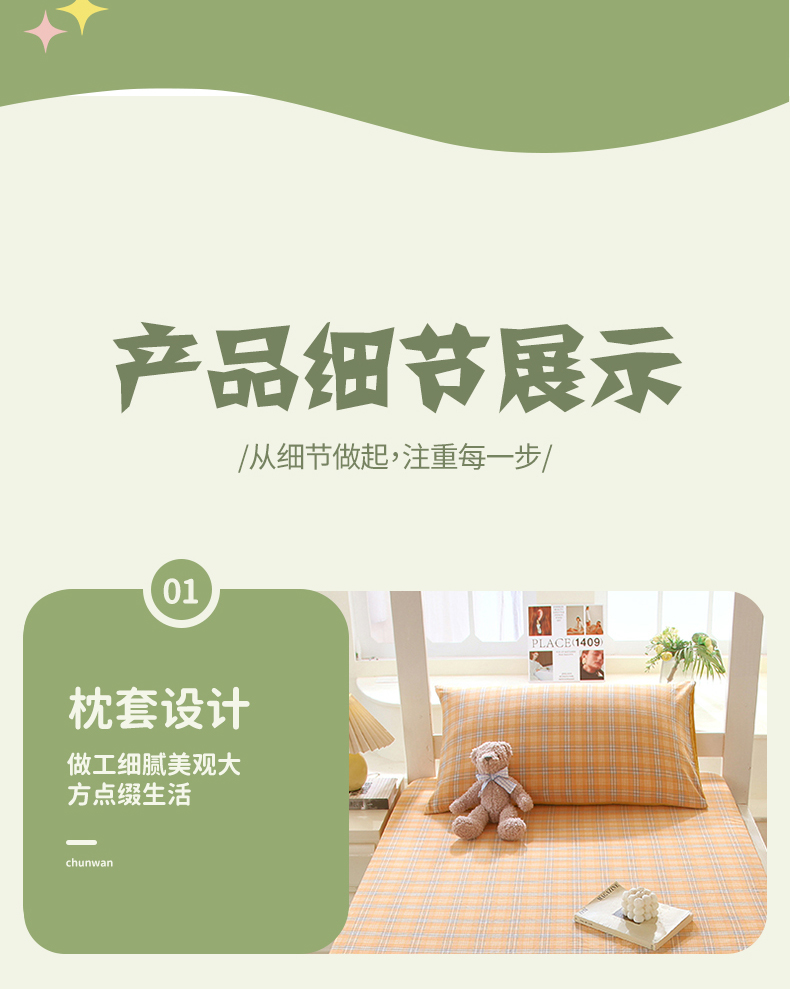 • 91家纺网 家纺一手货源 找家纺 春皖家纺 2025新款学生季全棉纯棉色织AB版水洗棉单品系列-单床笠 床笠单件 素雅-黄条