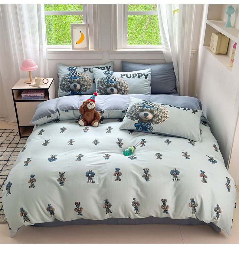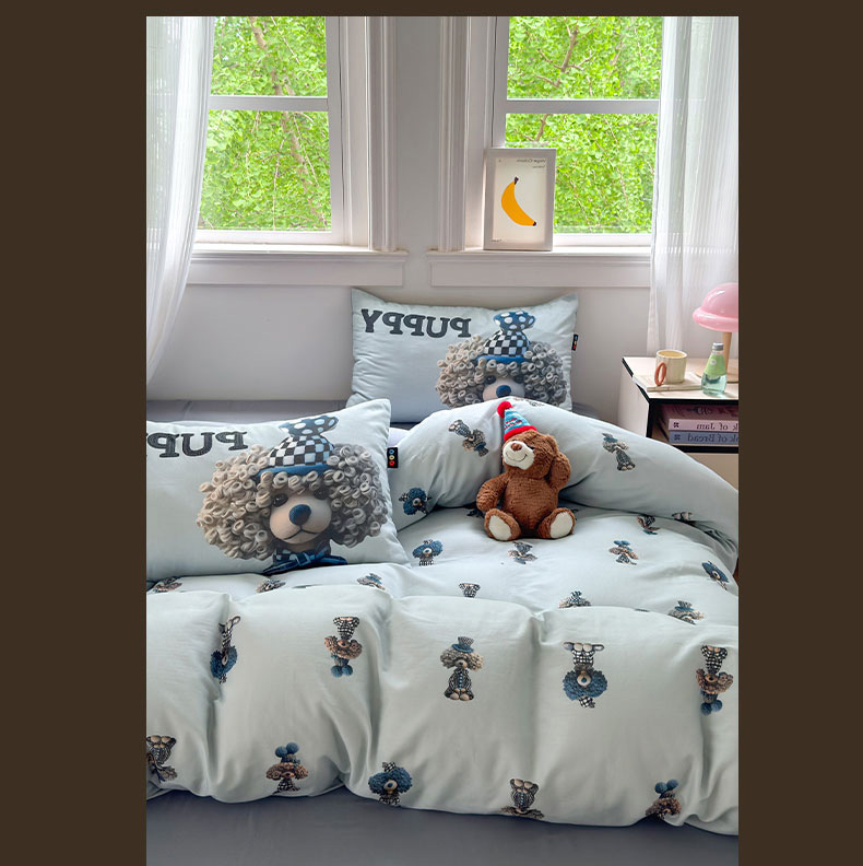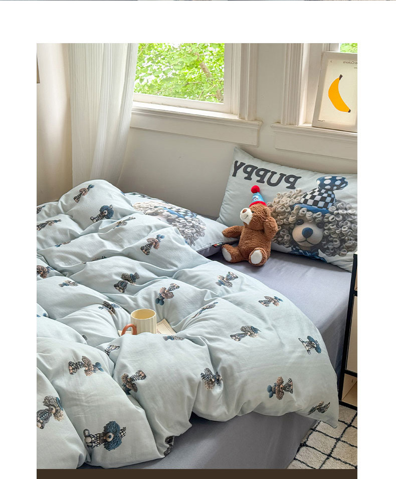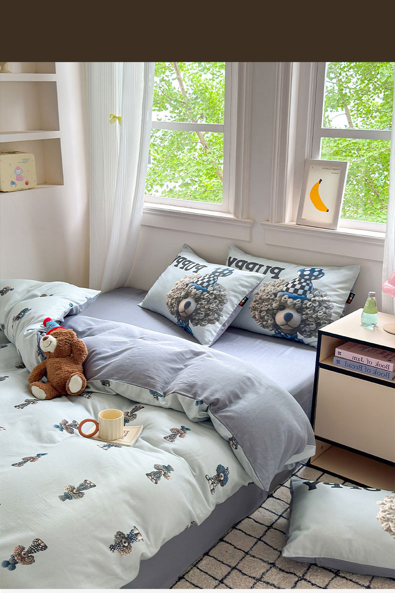 当前位置: 91家纺网 > 商品网购 > 床品套件 > 四件套 > 其它四件套 > RYB红黄兰 2025新款ins卡通设计师原创5D立体数码全棉纯棉双层纱四件套系列 雾蓝小狗