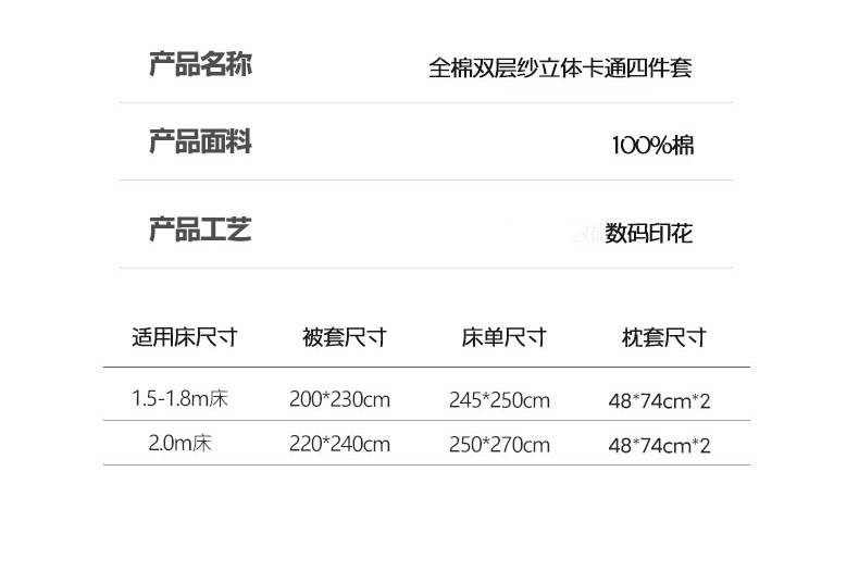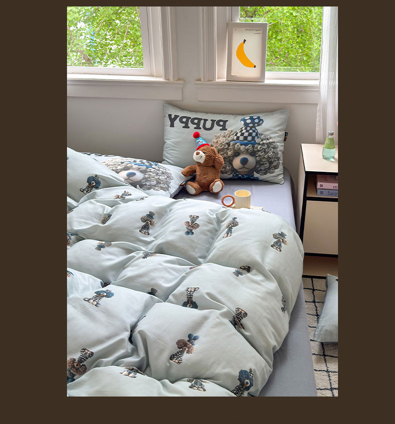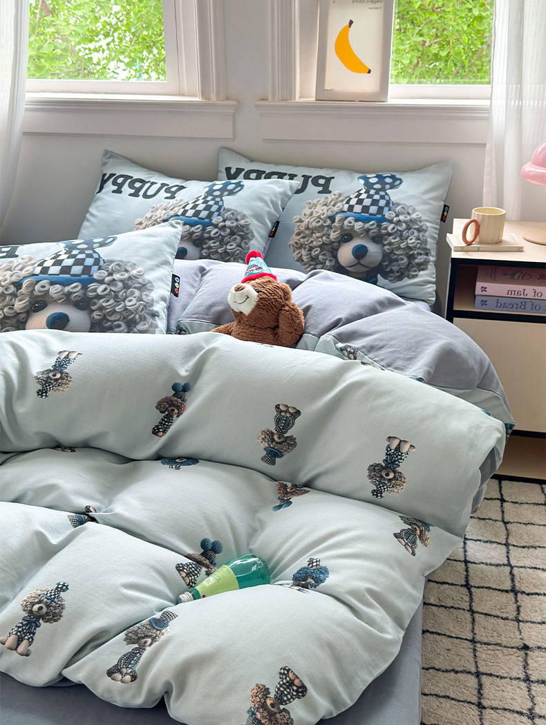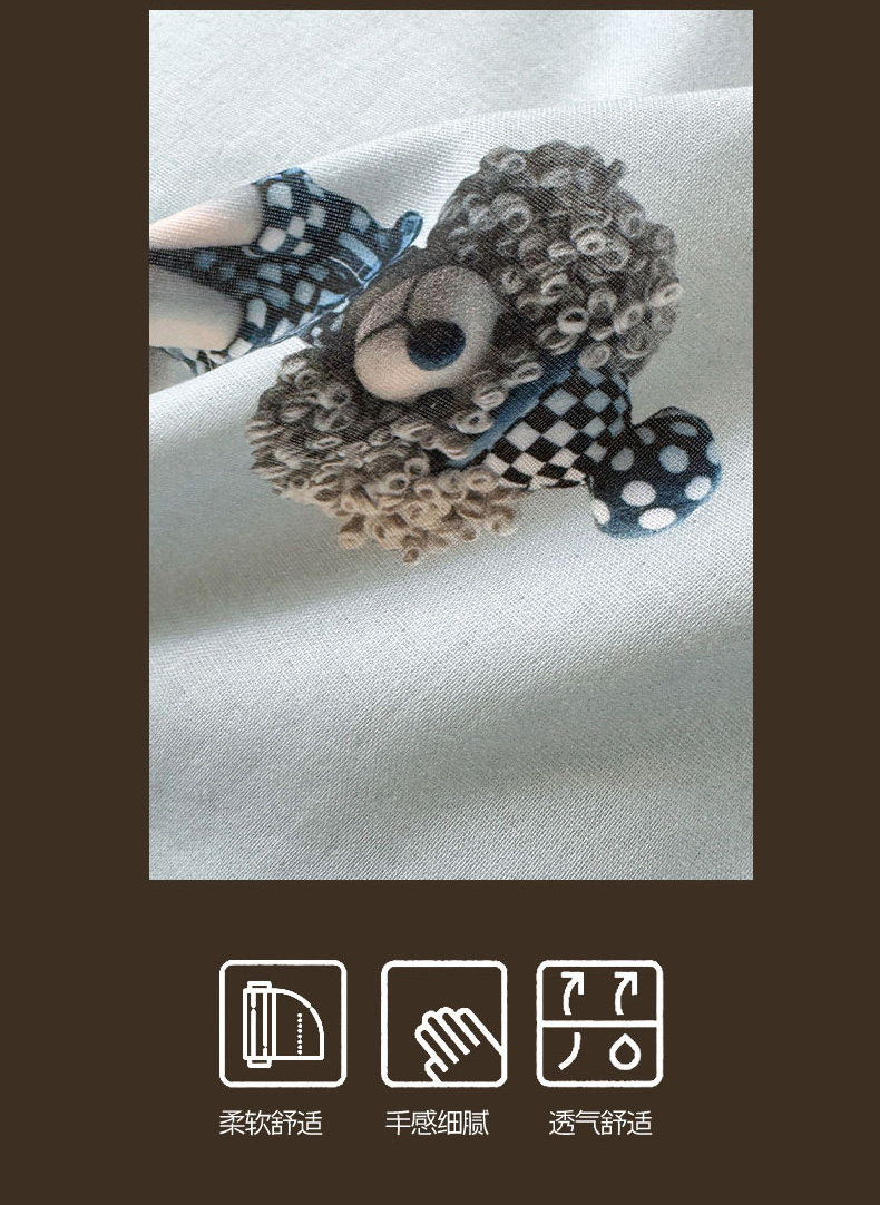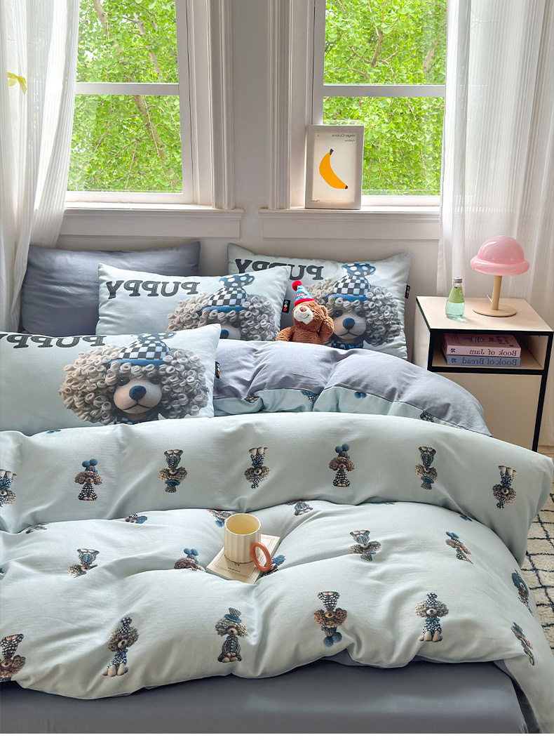 当前位置: 91家纺网 > 商品网购 > 床品套件 > 四件套 > 其它四件套 > RYB红黄兰 2025新款ins卡通设计师原创5D立体数码全棉纯棉双层纱四件套系列 雾蓝小狗
