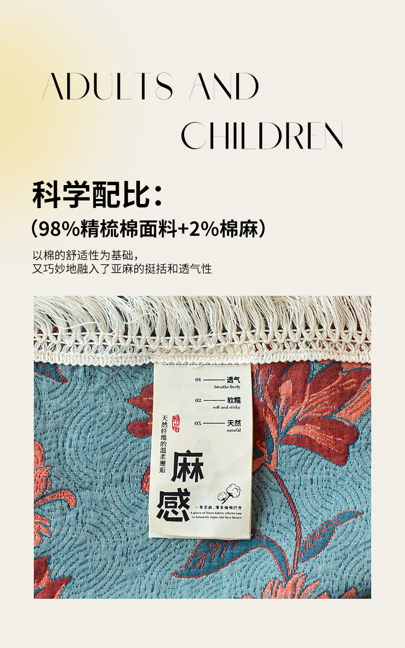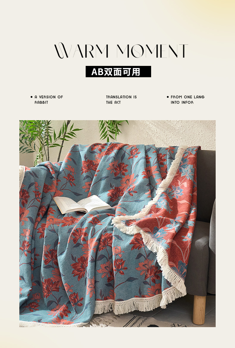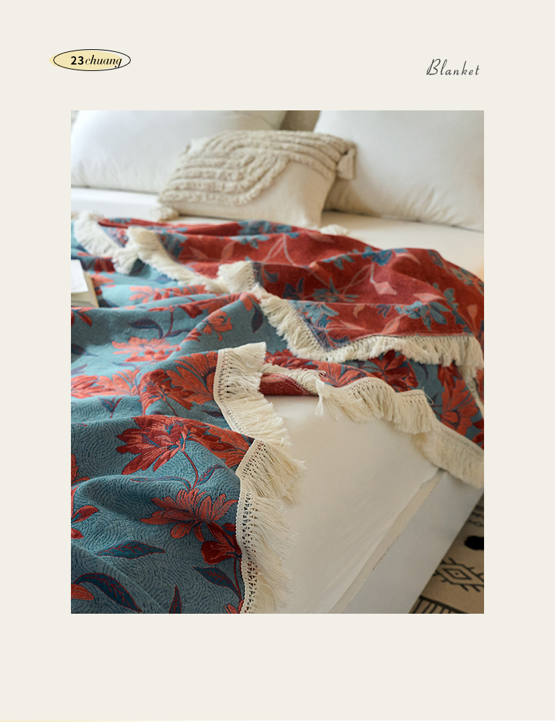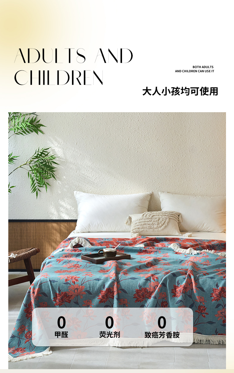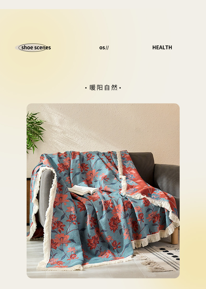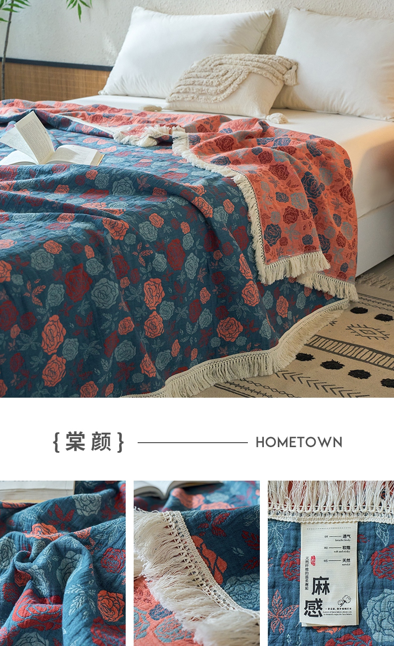 商品名称:春皖家纺 2025新款棉麻大提花三层纱多功能盖毯毯子 悦色