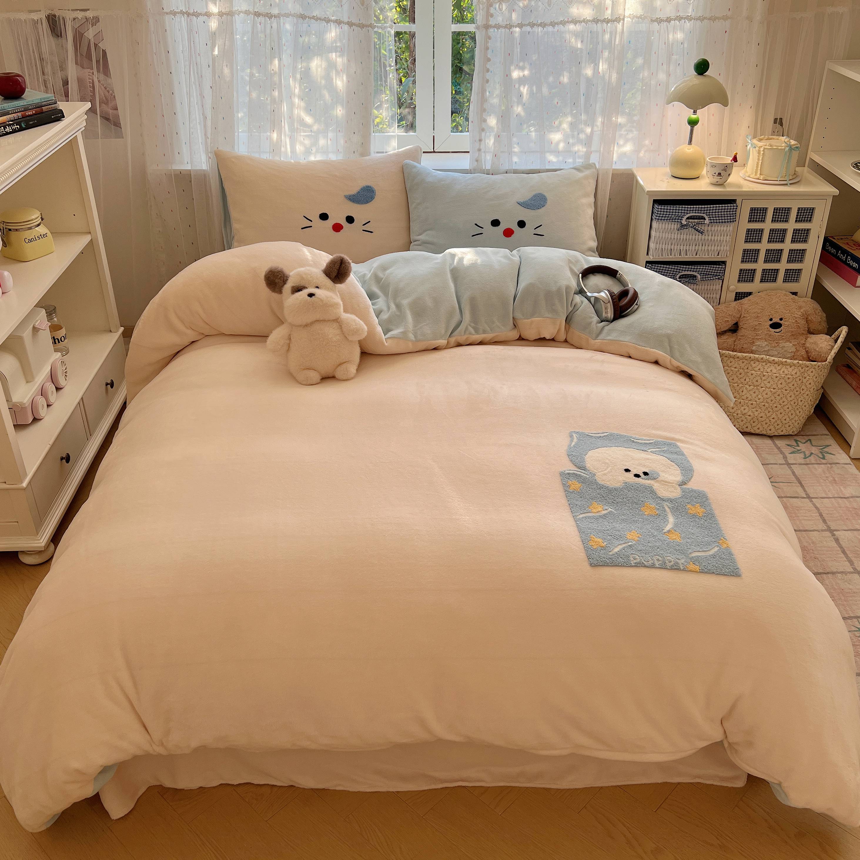 当前位置: 91家纺网 > 商品网购 > 床品套件 > 四件套 > 牛奶绒四件套 > 顾里家纺 2025秋冬新款童趣毛巾绣印花牛奶绒四件套 休闲猫咪