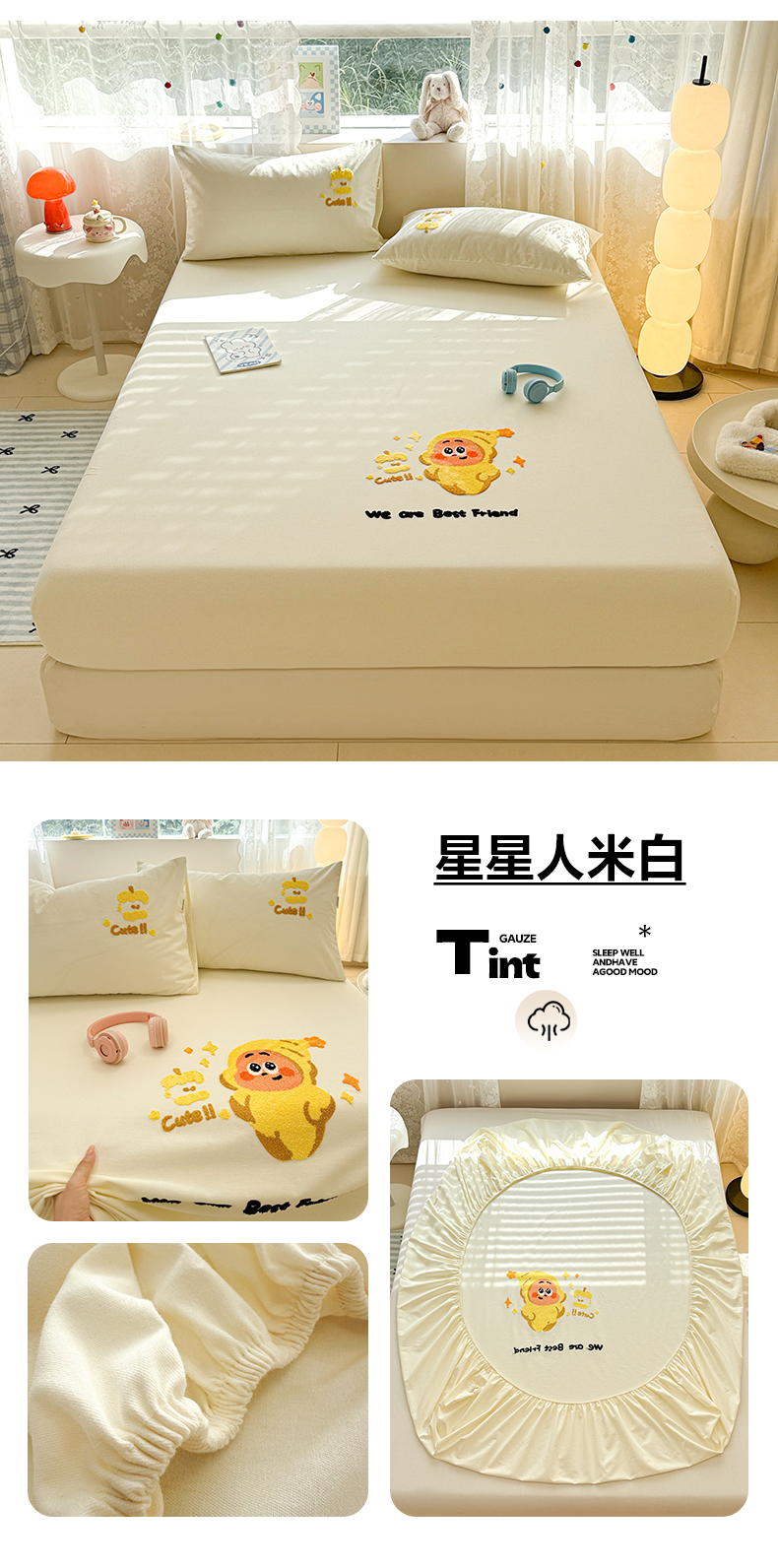 当前位置: 91家纺网 > 商品网购 > 床品套件 > 三件套 > 沐辰 2025新款A类全棉磨毛绣花单品床单床笠 星星人条纹-床笠