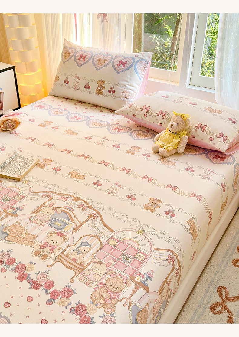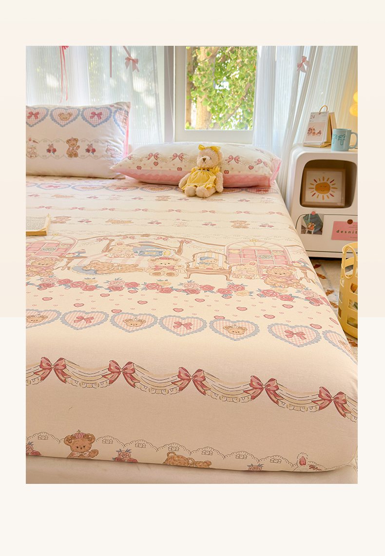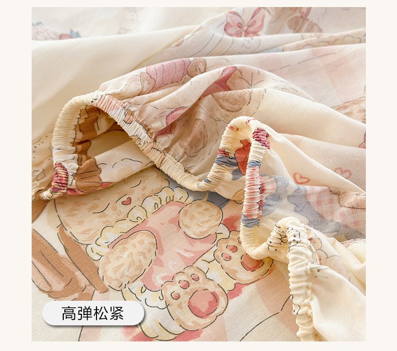 清雅福 2025新款全棉柔软印花系列单床笠 安缦小熊