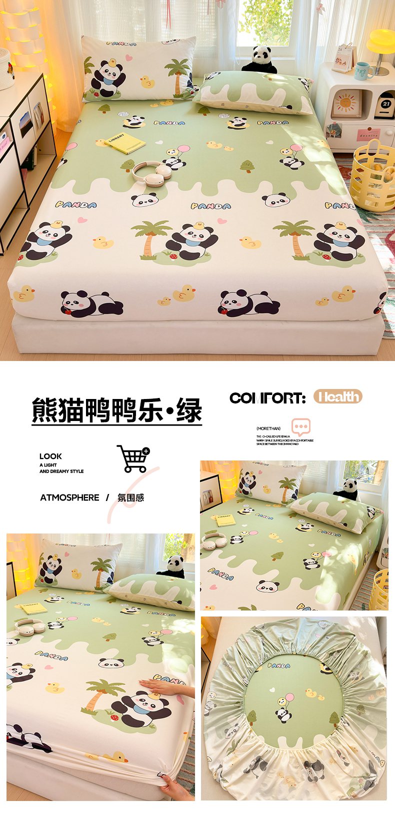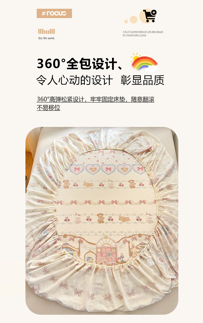 • 91家纺网 家纺一手货源 找家纺 清雅福 2025新款全棉柔软印花系列单床笠 安缦小熊