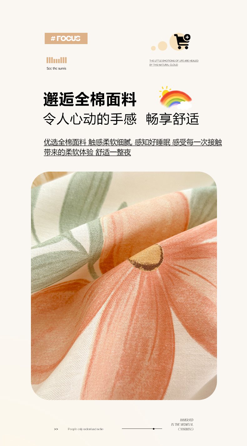 • 91家纺网 家纺一手货源 找家纺 清雅福 2025新款全棉柔软印花系列单床笠 云裳花谷
