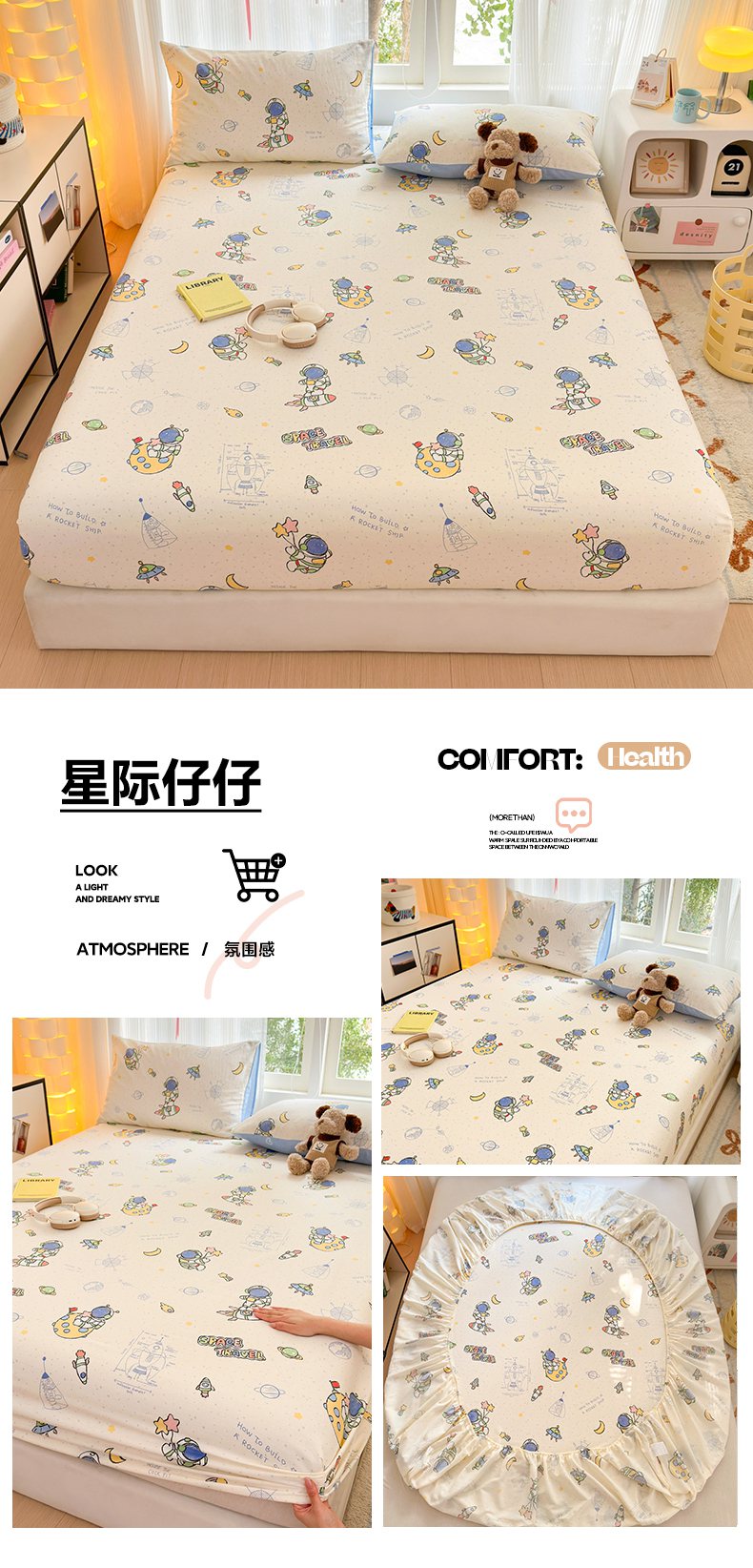 • 91家纺网 家纺一手货源 找家纺 (总)清雅福 2026春夏新款INS小清新40支全棉13372单枕套第二批,可爱萌星,可爱喵喵,蓝色小象,觅秋,沫汐,跷跷马,甜蜜花园,星星布偶,星星企鹅,幸福小熊,幸运星,月亮狗
