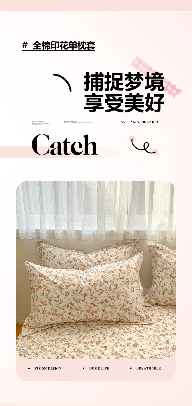商品名称:花梦欣 2026新款全棉印花单品系列2花卉款-单枕套 安暖如夏