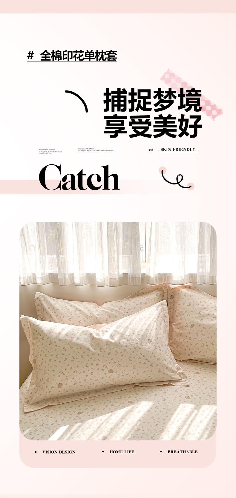 商品名称:花梦欣 2026新款全棉印花单品系列2花卉款-单枕套 微花耳耳粉