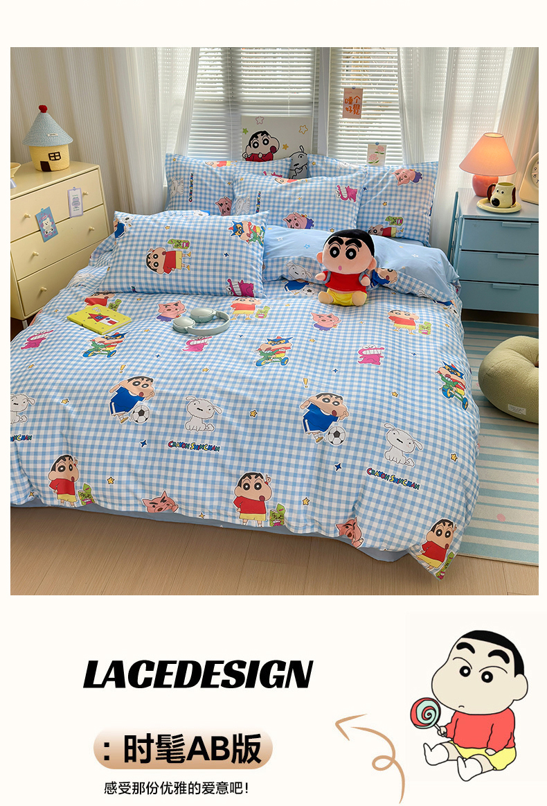 曼之夏 2026新款全棉卡通印花四件套系列-蜡笔小新 蓝格小新
