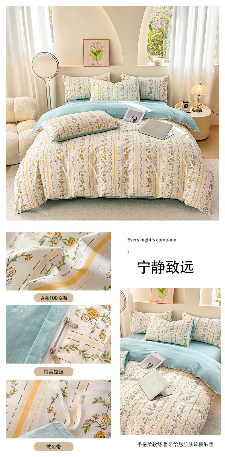 当前位置: 91家纺网 > 商品网购 > 床品套件 > 四件套 > 全棉普通四件套 > 宇彬家纺 2026直播新款13372A类全棉纯棉印花床单床笠款四件套和单被套喷气清新简约 翰墨飘香