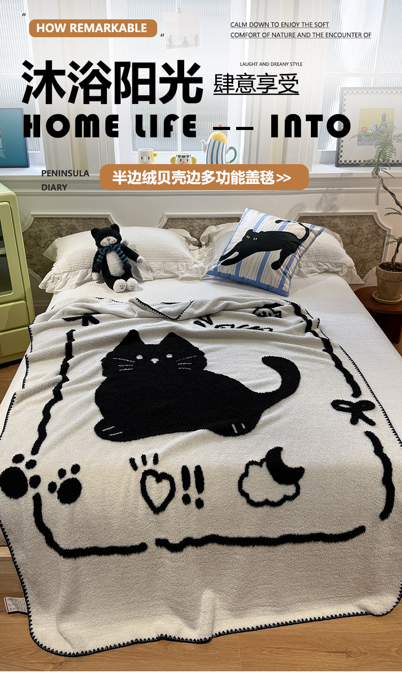 商品名称:(总)曼町家居 2026新款针织半边绒贝壳边盖毯毯子