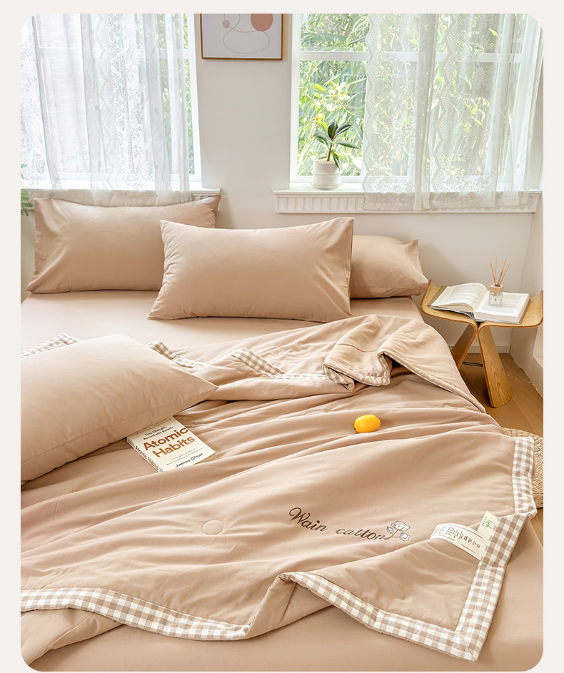 (总)雯雨家纺 2026新款全棉水洗棉棉花夏凉被-简森系列,简森-冰山驼,简森-高级灰,简森-军绿黄,简森-明亮黄,简森-轻奢蓝,简森-深蓝,简森-文艺粉