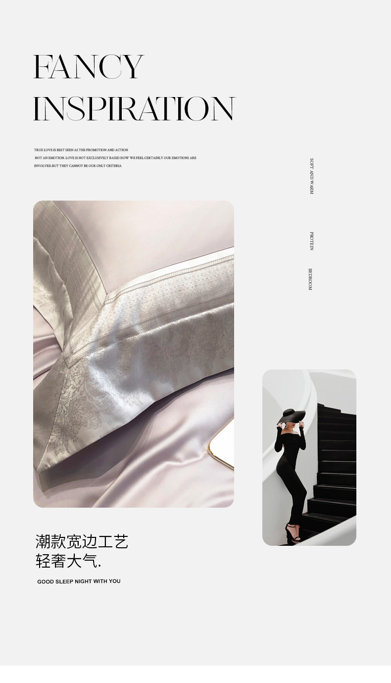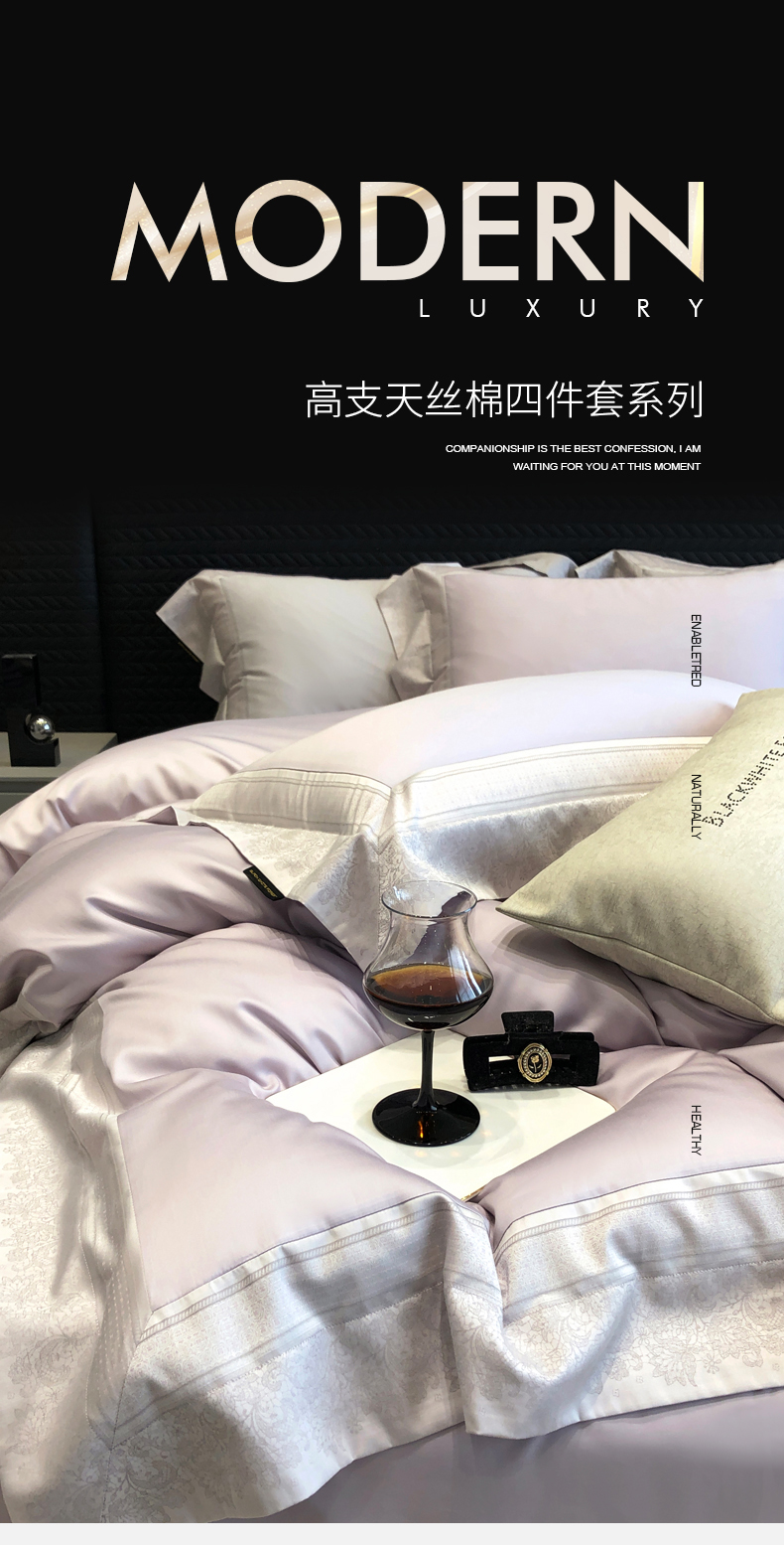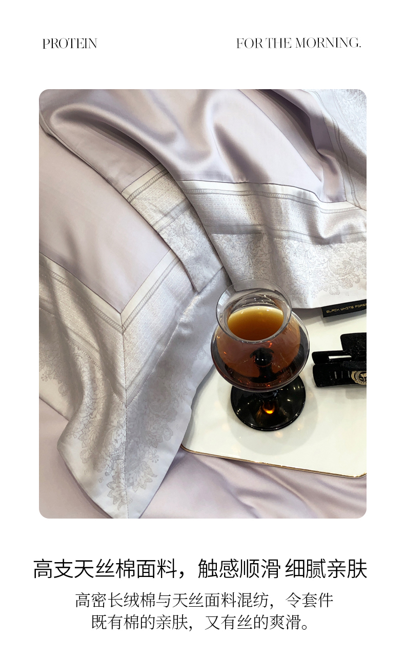 黑白森林2024款 100S支天丝棉提花四件套天丝全棉,芙拉维-裸灰,芙拉维-秋绿,圣露安-雾粉,圣露安-香槟,西西里-奶白,西西里-柔粉