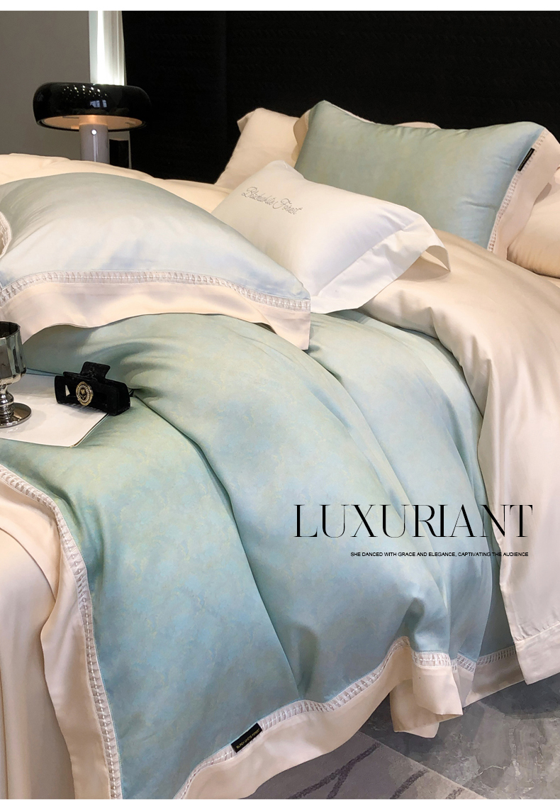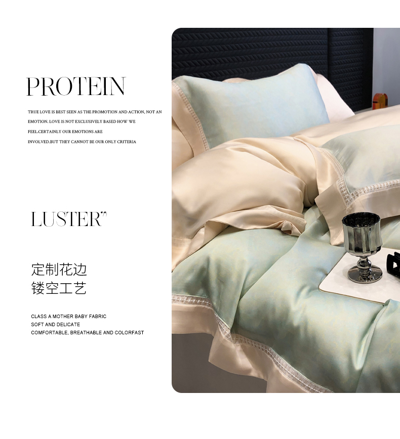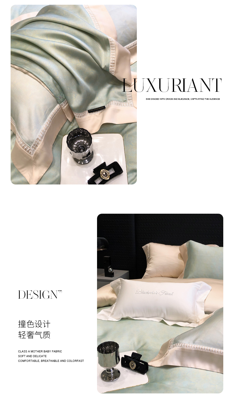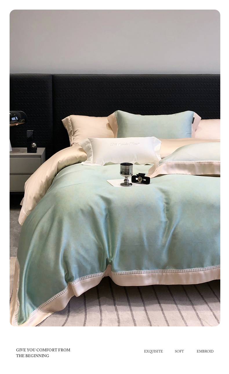 (总)黑白森林2024款 80X80S高支天丝棉四件套镂空蕾丝花边天丝全棉,尚美-晨夕粉,尚美-古象白,尚美-青砂绿,尚美-银雪灰