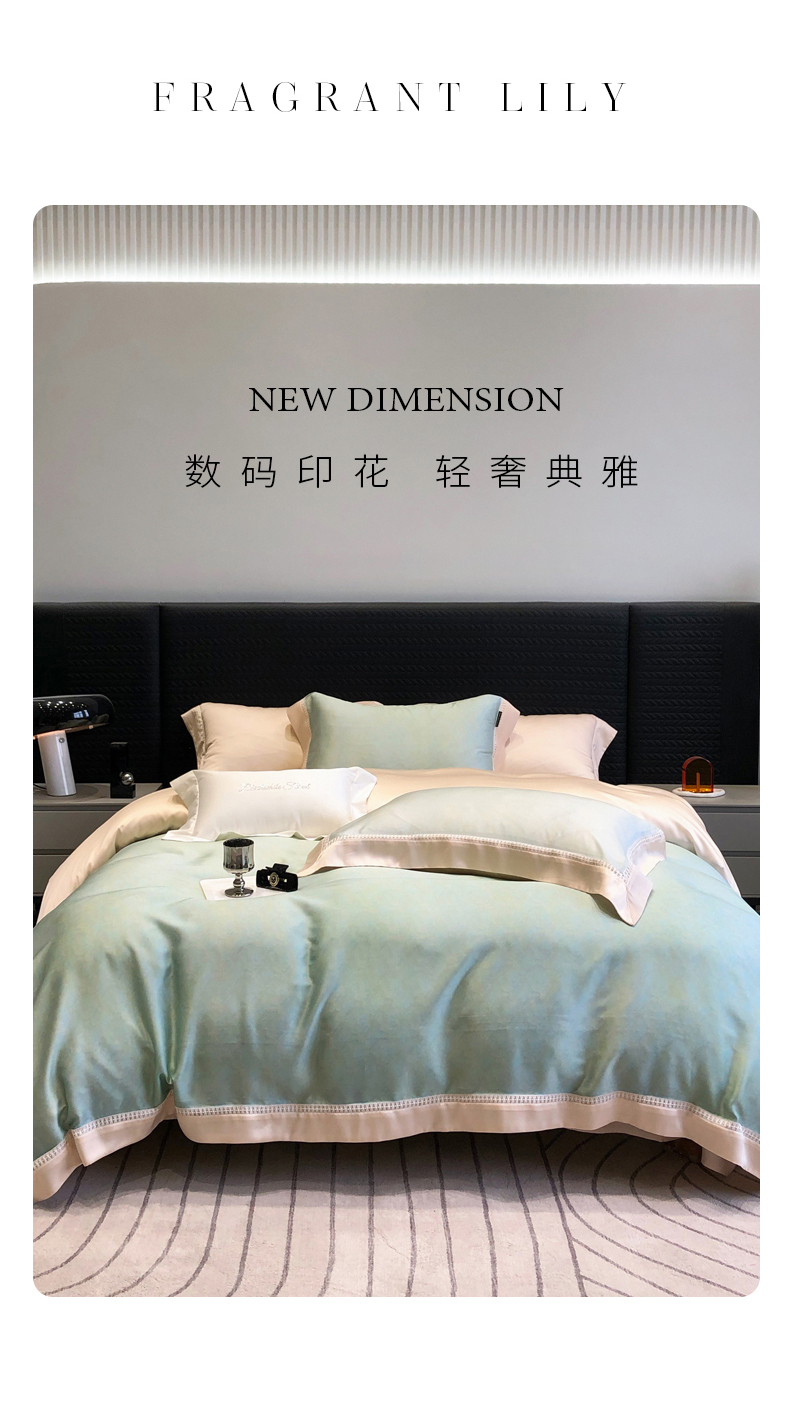 黑白森林2024款 50X50S高支天丝棉数码印花四件套天丝全棉,格伦黄,格伦绿,若瑶灰,羽笛蓝