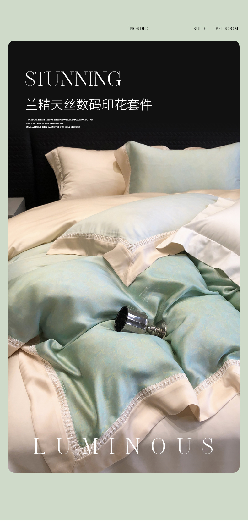 商品名称:黑白森林 2026新款轻奢天丝印花四件套 蒂妮-绿