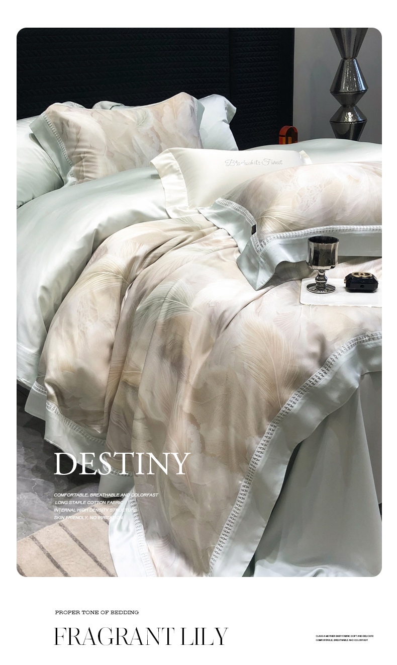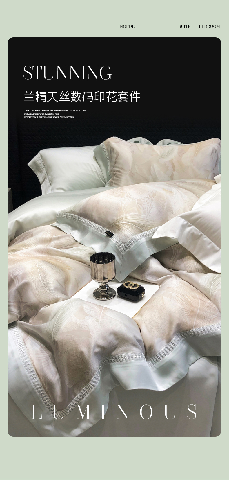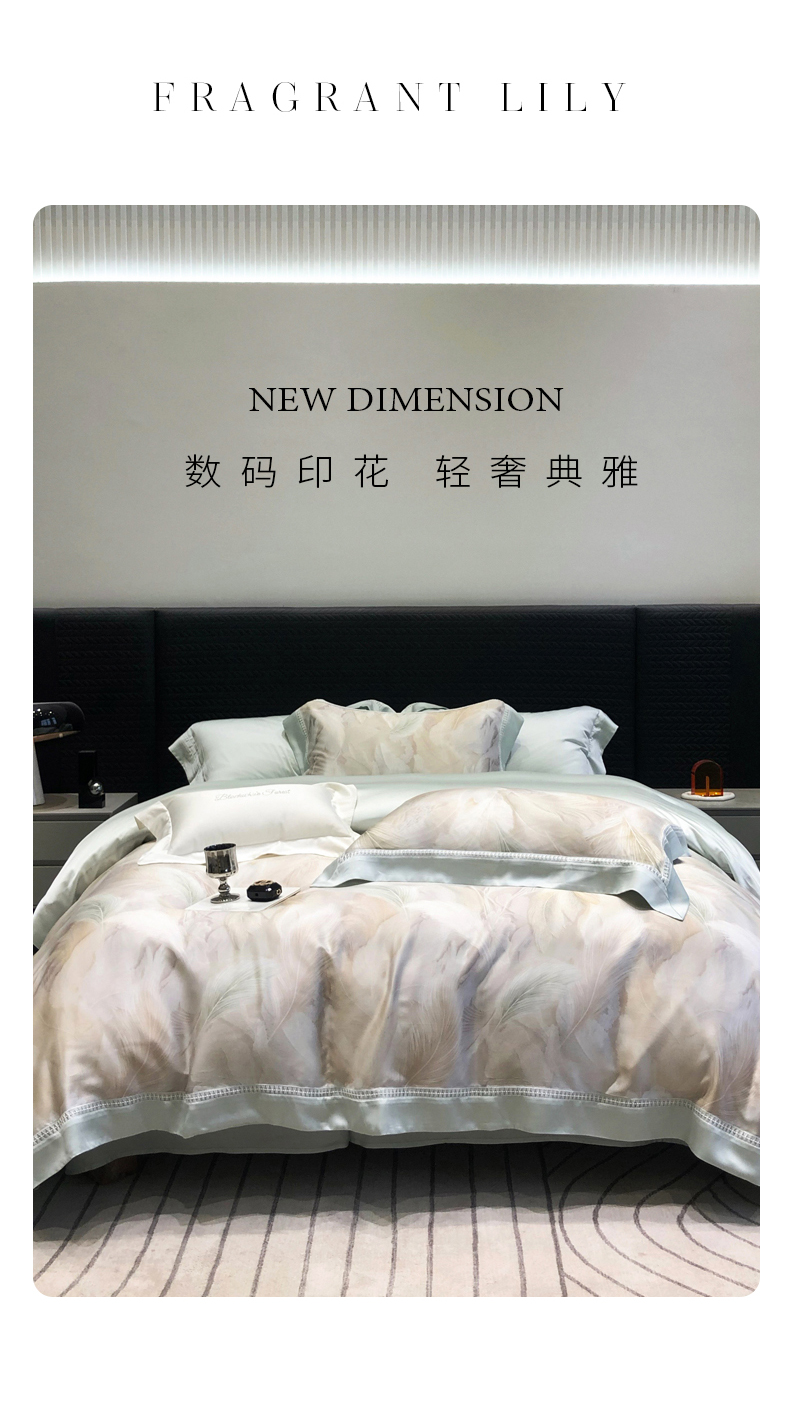 黑白森林2024款 50X50S高支天丝棉数码印花四件套天丝全棉,格伦黄,格伦绿,若瑶灰,羽笛蓝
