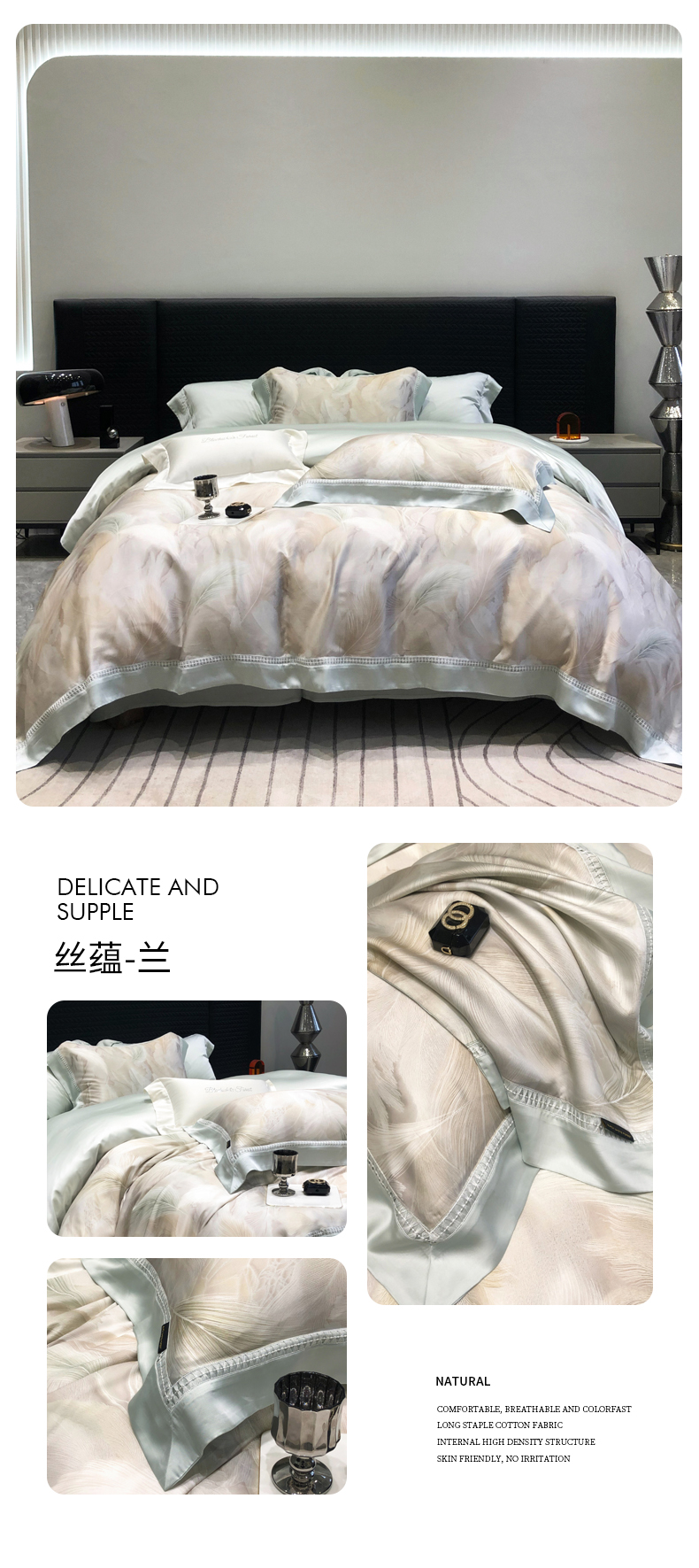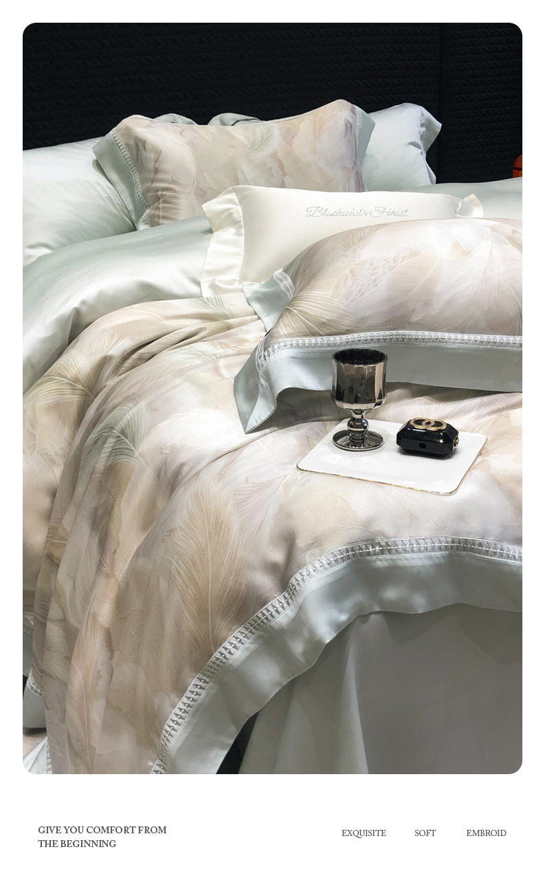 黑白森林2024款 100S支天丝棉提花四件套天丝全棉,芙拉维-裸灰,芙拉维-秋绿,圣露安-雾粉,圣露安-香槟,西西里-奶白,西西里-柔粉