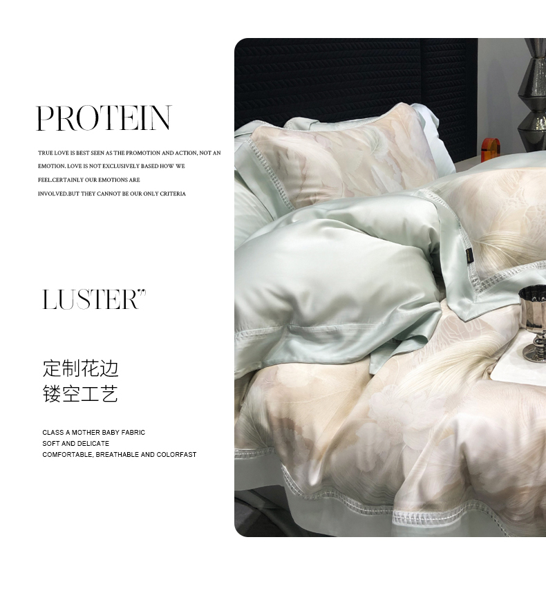 (总)黑白森林2024款 80X80S高支天丝棉四件套镂空蕾丝花边天丝全棉,尚美-晨夕粉,尚美-古象白,尚美-青砂绿,尚美-银雪灰