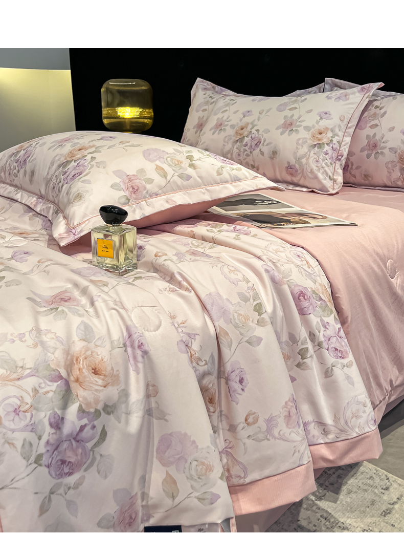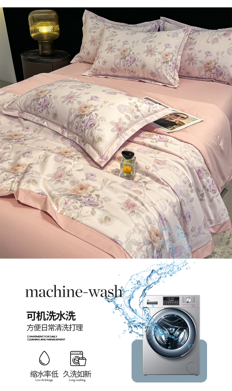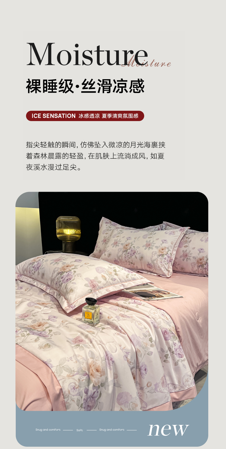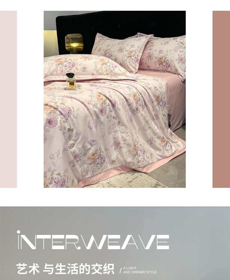 (总)金梦拉家纺 2026新款凉感天丝竹节纱大宽边一字绣夏被空调被夏凉被四件套