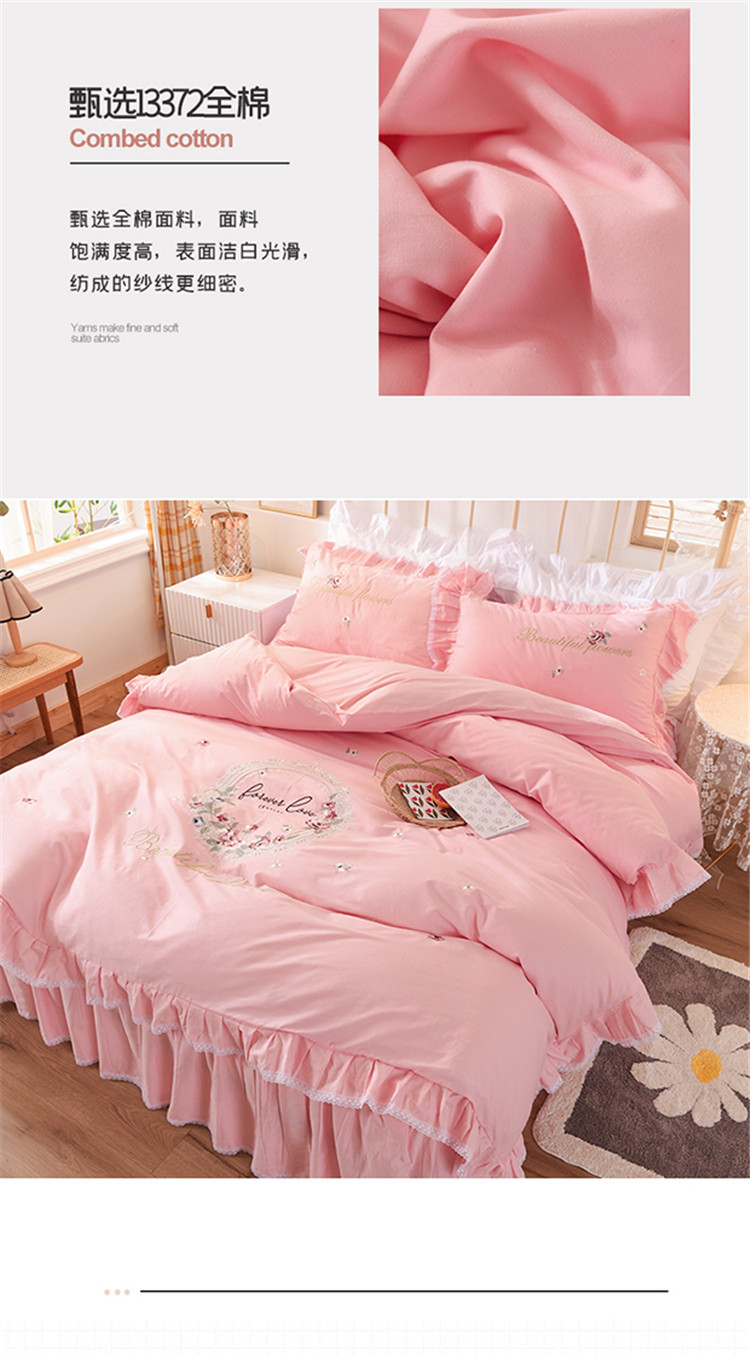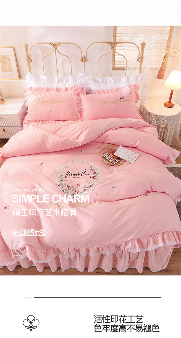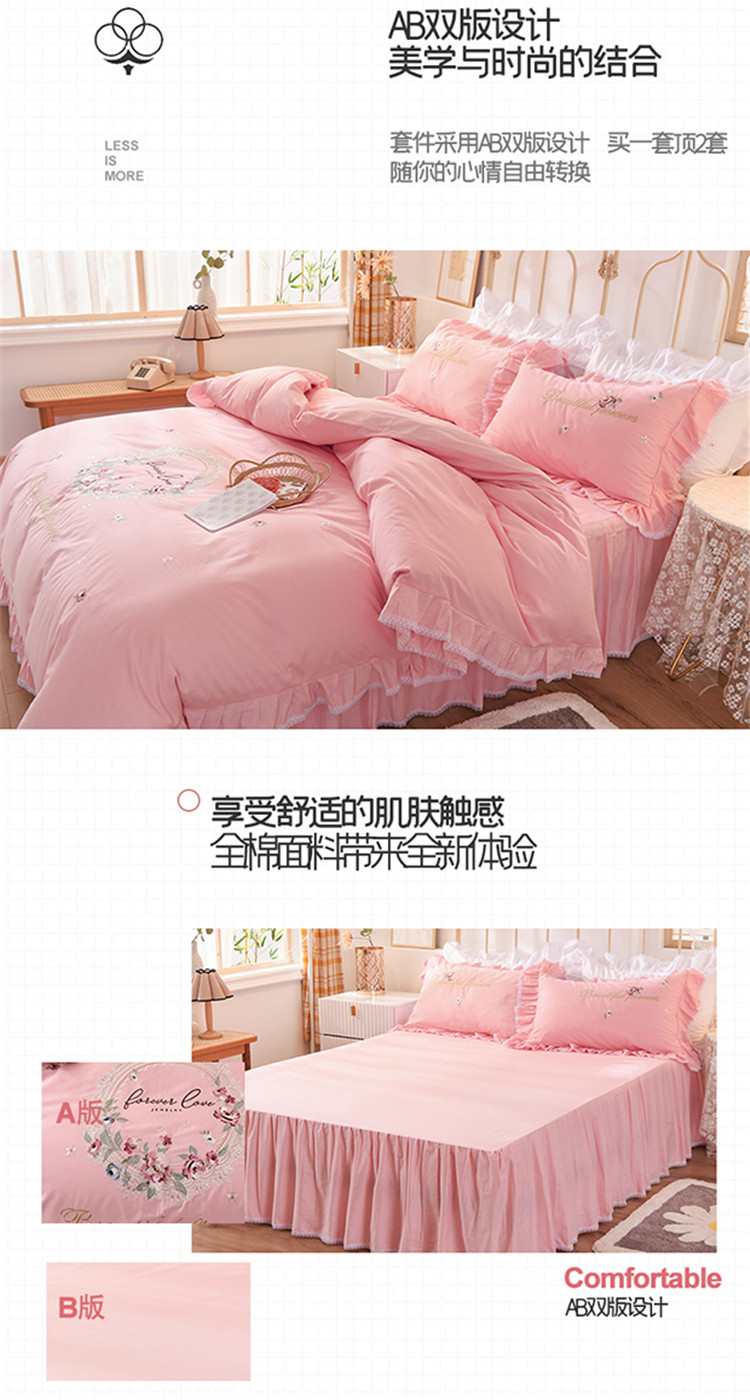 迪欧芙 2024春季纯棉13372公主风四件套爱的结语系列 爱的结语-粉,爱的结语-粉