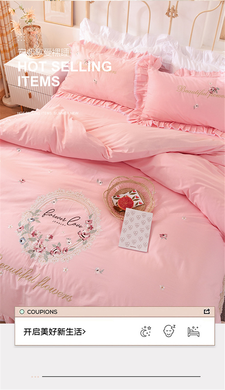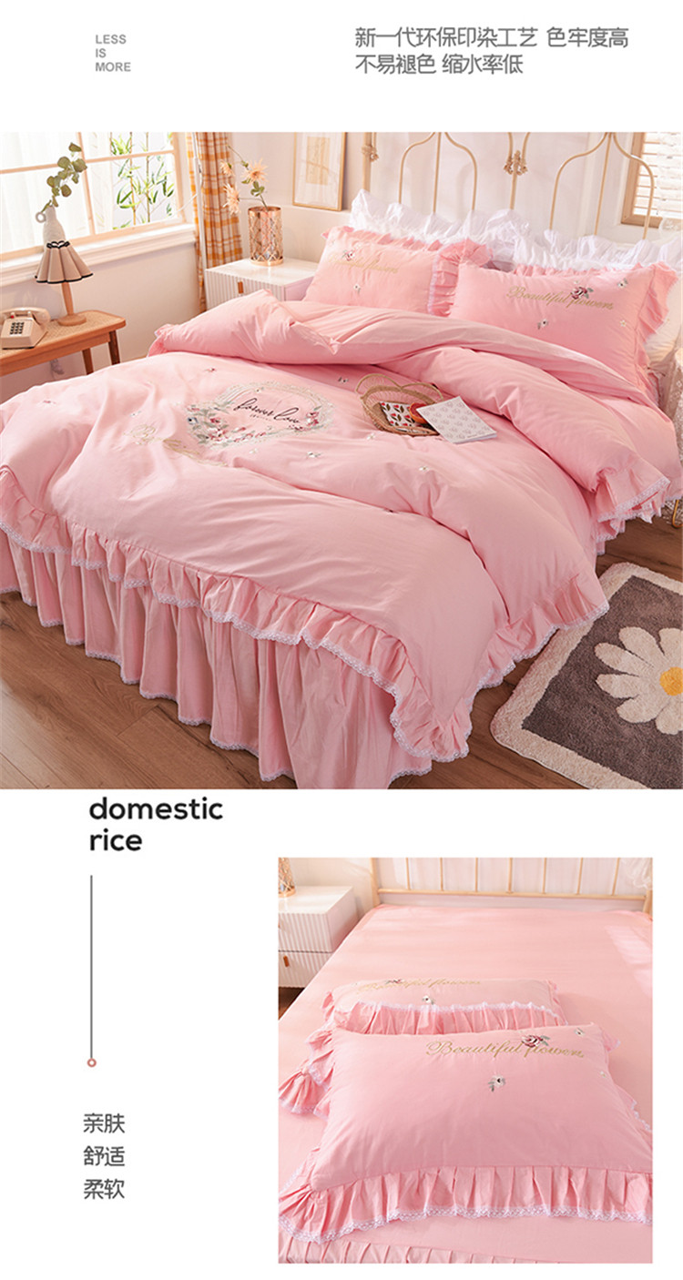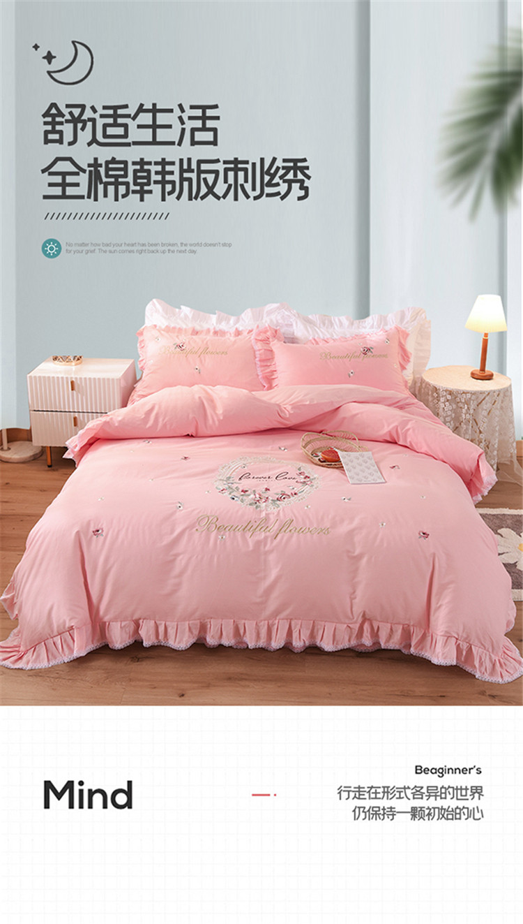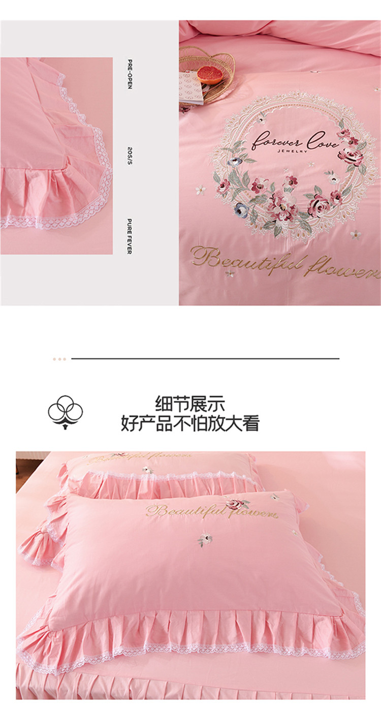 迪欧芙 2024春季纯棉13372公主风四件套爱的结语系列 爱的结语-粉,爱的结语-粉
