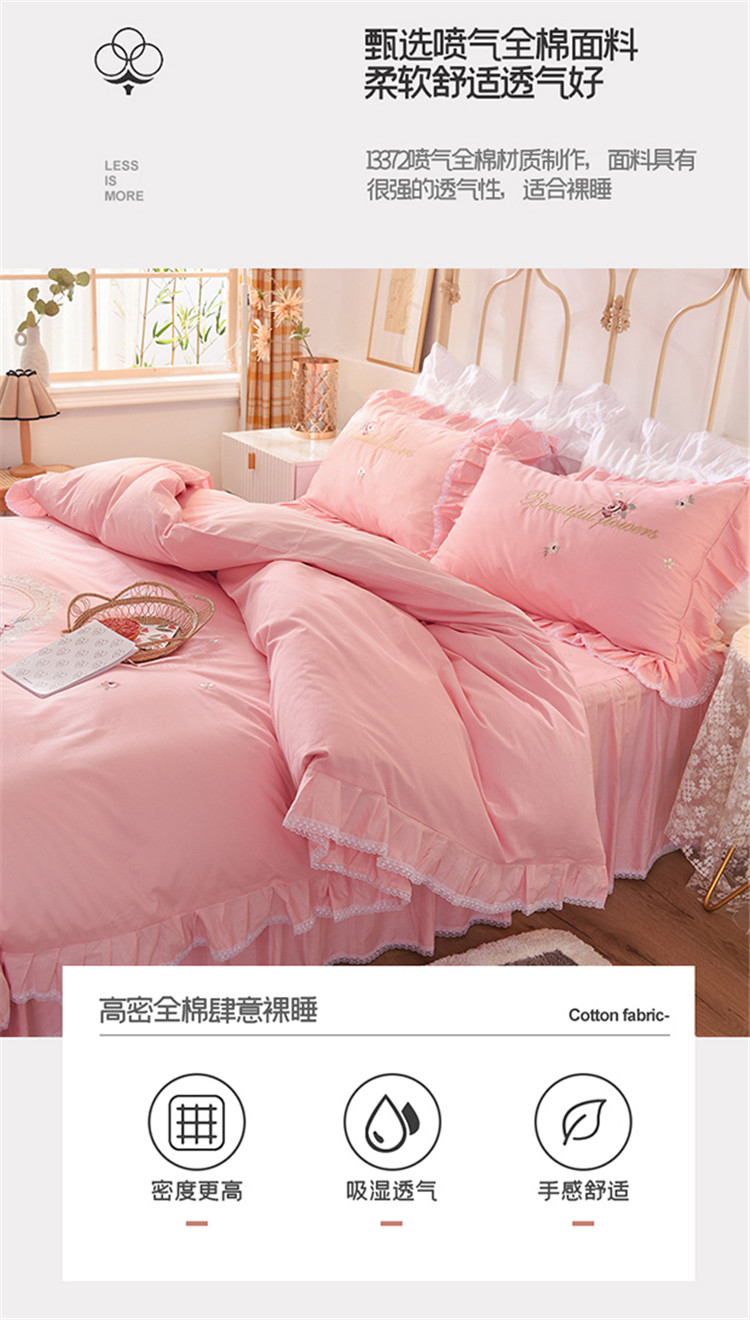 商品名称:迪欧芙 2020新款全棉花蔓系列床裙款四件套韩版四件套 粉玉