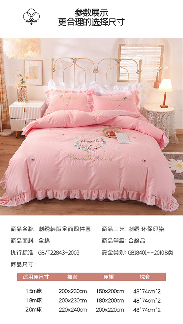 (总)迪欧芙 2024春季纯棉13372公主风四件套刺绣花边四件套爱的结语系列,爱的结语-白,爱的结语-粉,爱的结语-蓝
