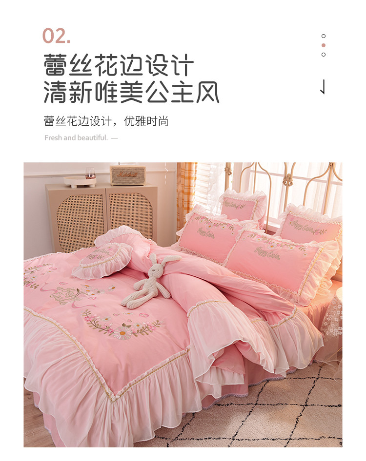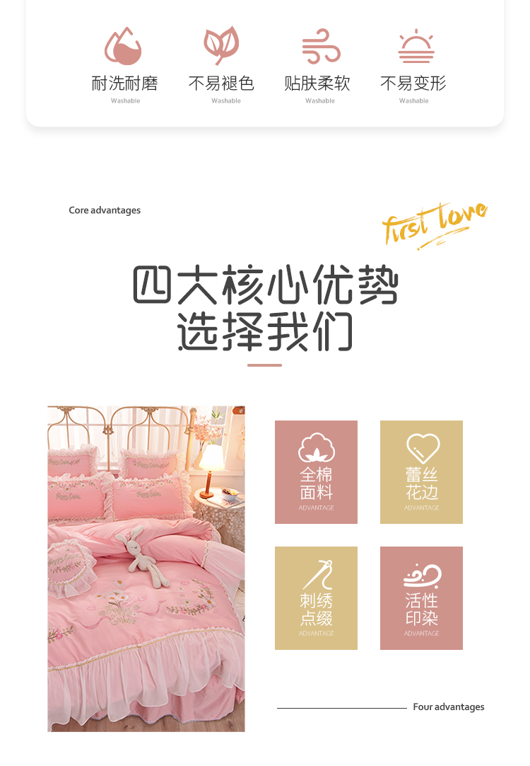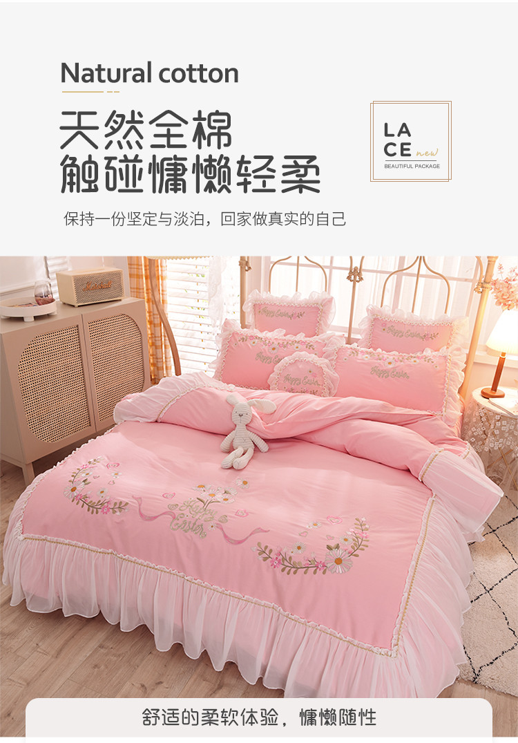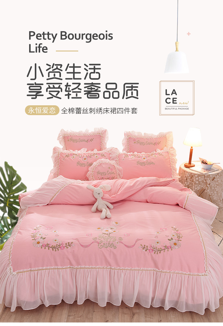 商品名称:迪欧芙 2020新款全棉蕾丝公主风永恒爱恋系列四件套 粉色