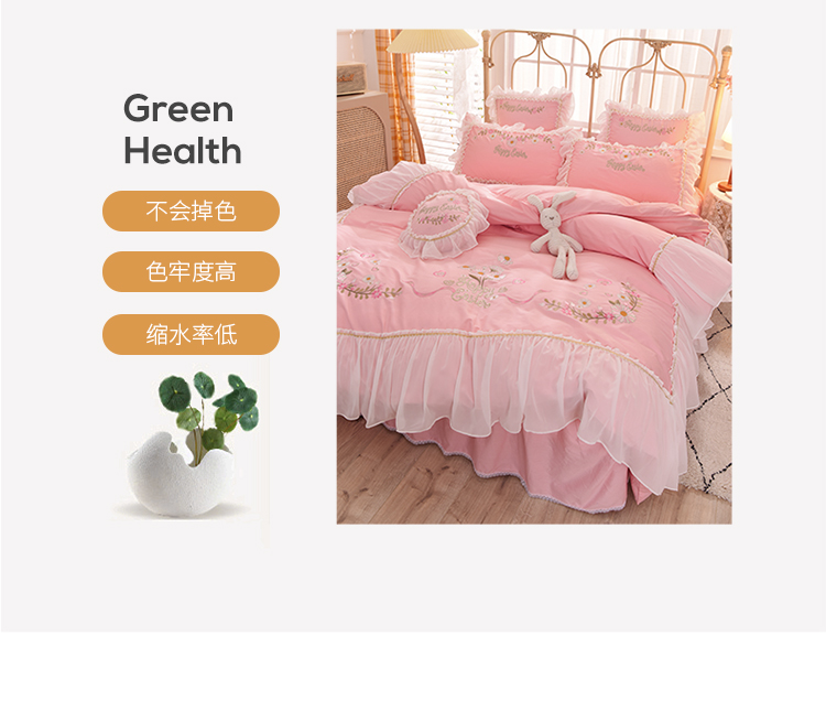 (总)迪欧芙 2023新款纯棉全棉水洗棉刺绣工艺款四件套-艾薇,艾薇-粉,艾薇-绿,艾薇-奶油白