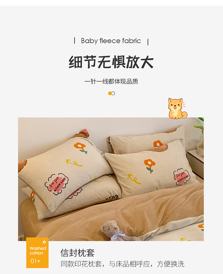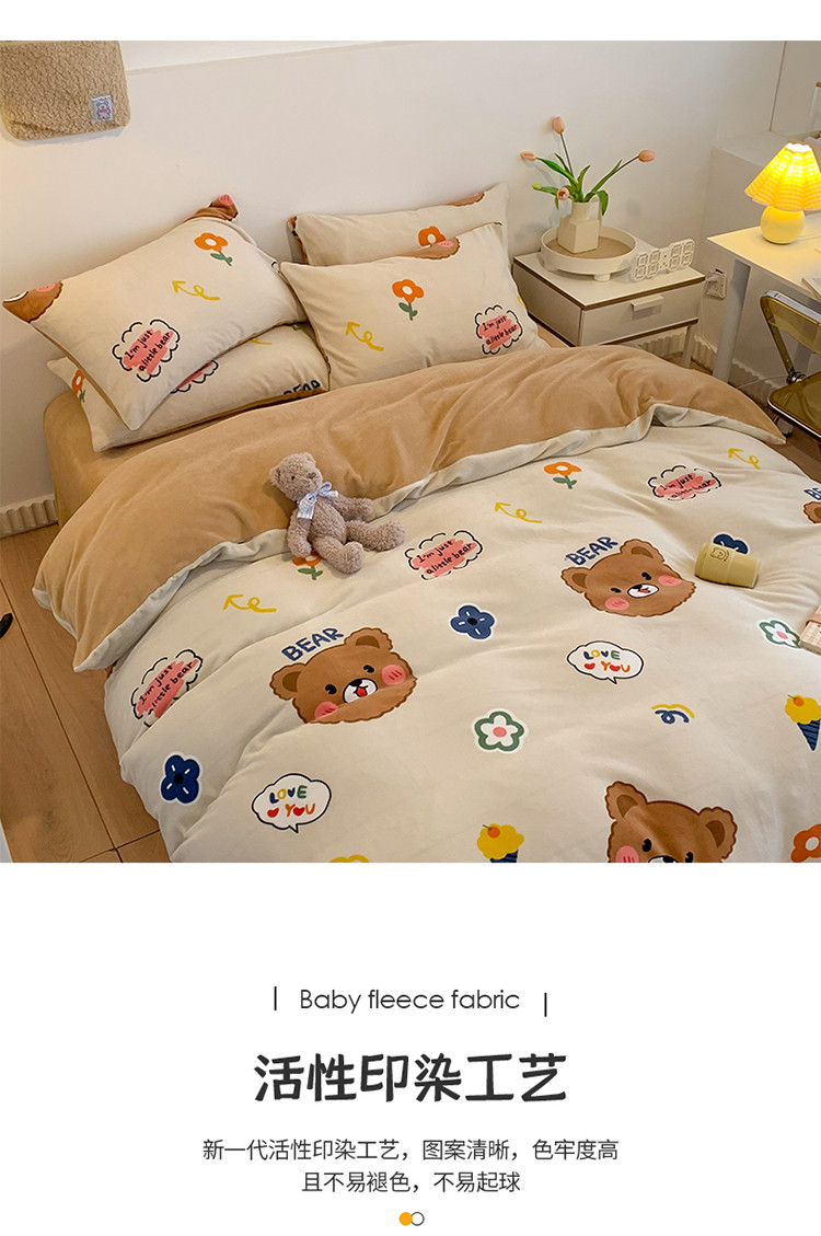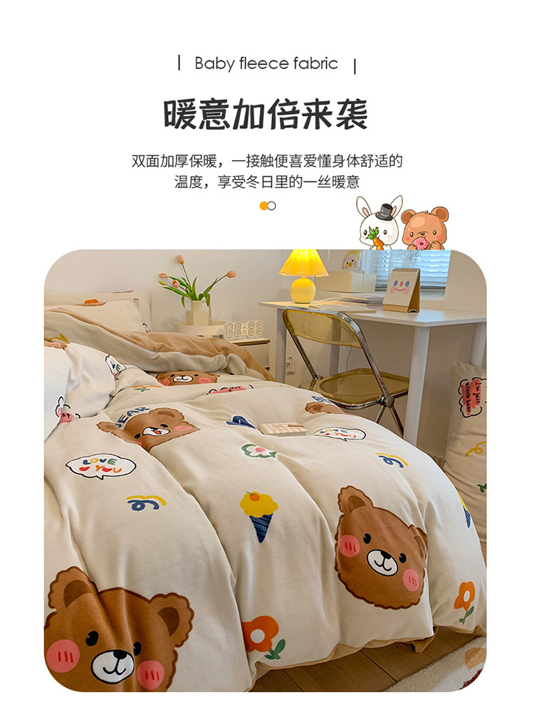商品名称:澳萝拉2021高克重卡通清新牛奶绒四件套水晶法莱绒 奶油熊