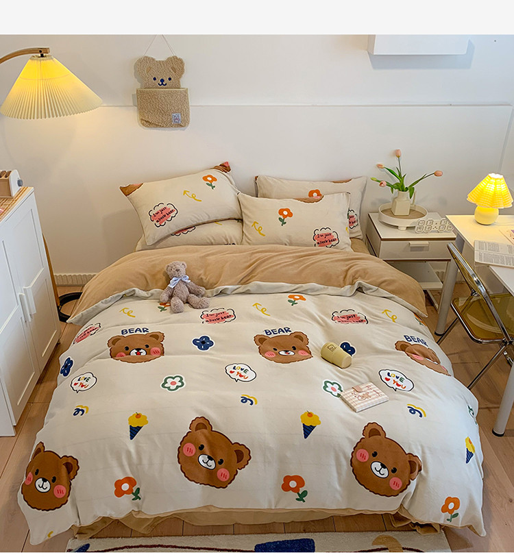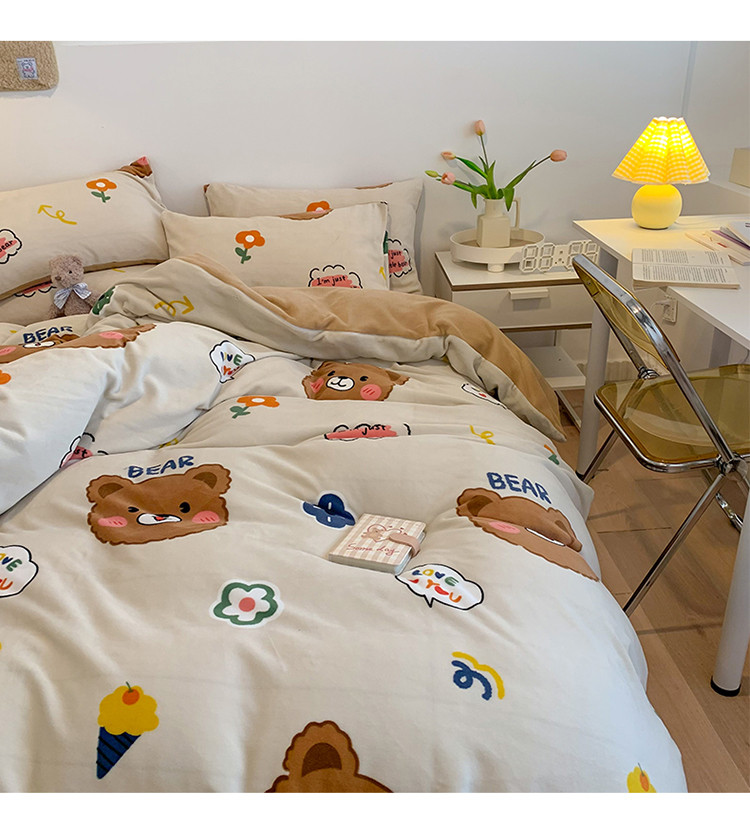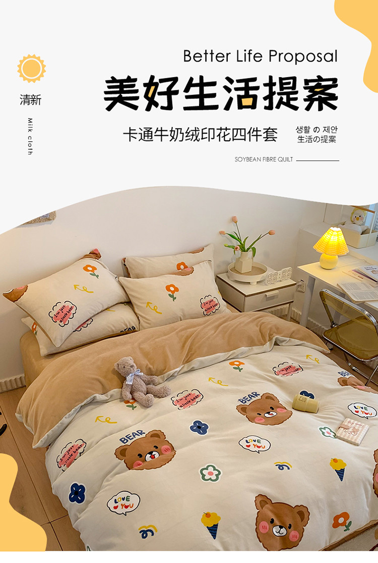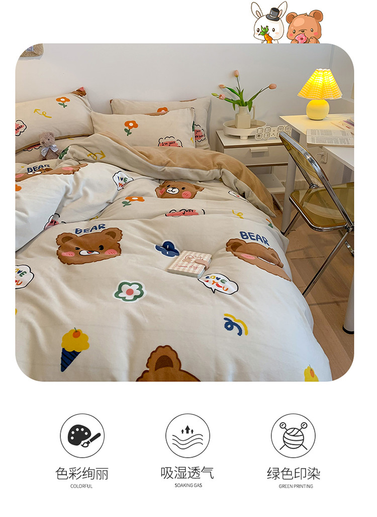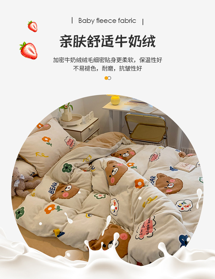 澳萝拉2021高克重卡通清新牛奶绒四件套水晶法莱绒 奶油熊
