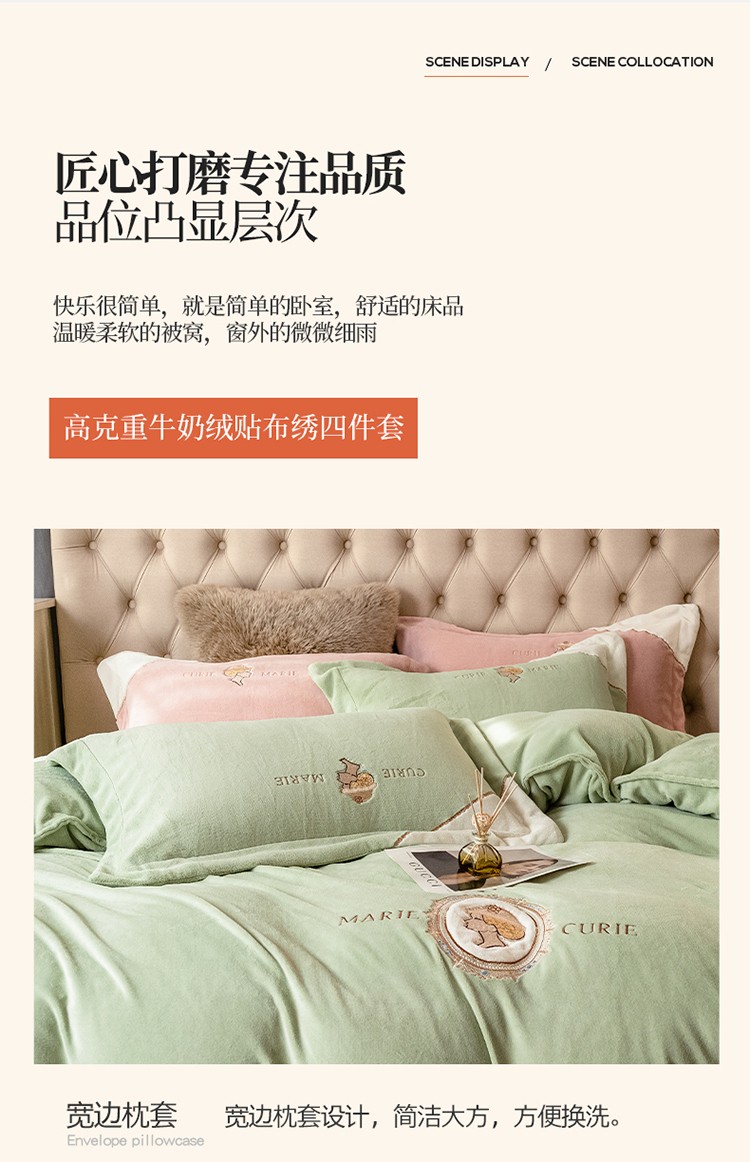 (总)佰亿莱2024新款牛奶绒贴布绣四件套-居里夫人系列