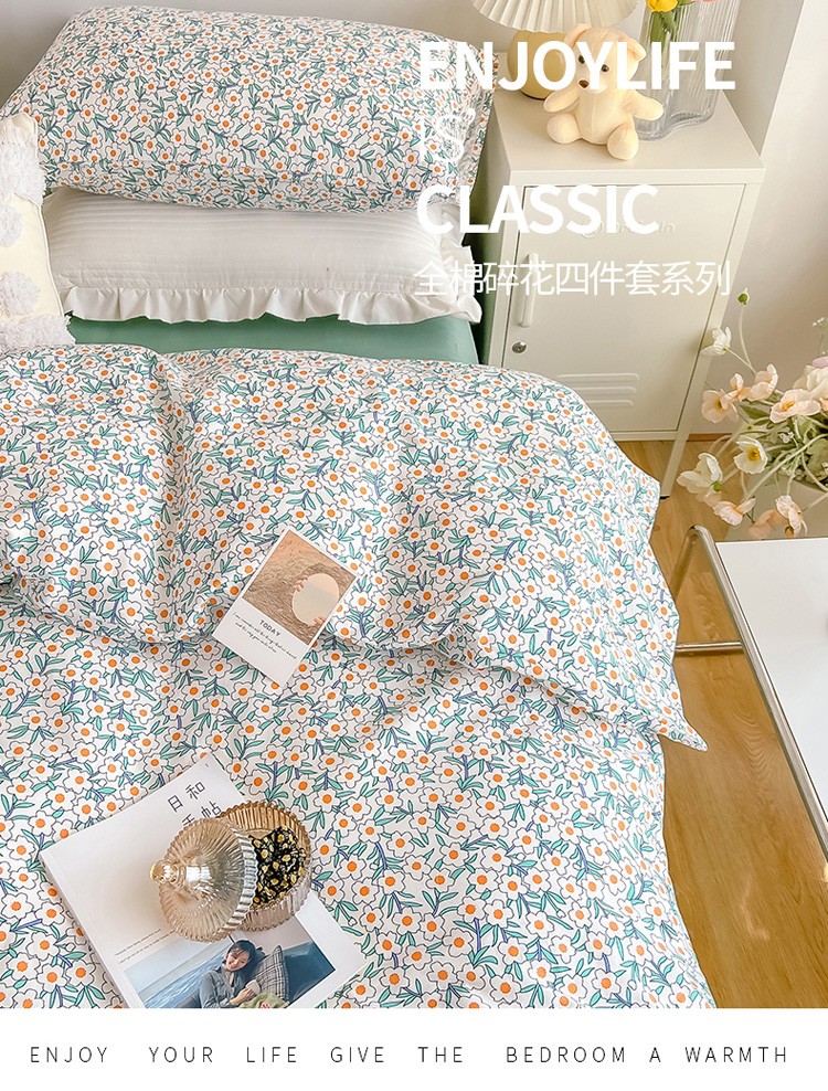 当前位置: 91家纺网 > 商品网购 > 床品套件 > 四件套 > 全棉普通四件套 > 艾沁家纺13372纯棉碎花四件套 白茶