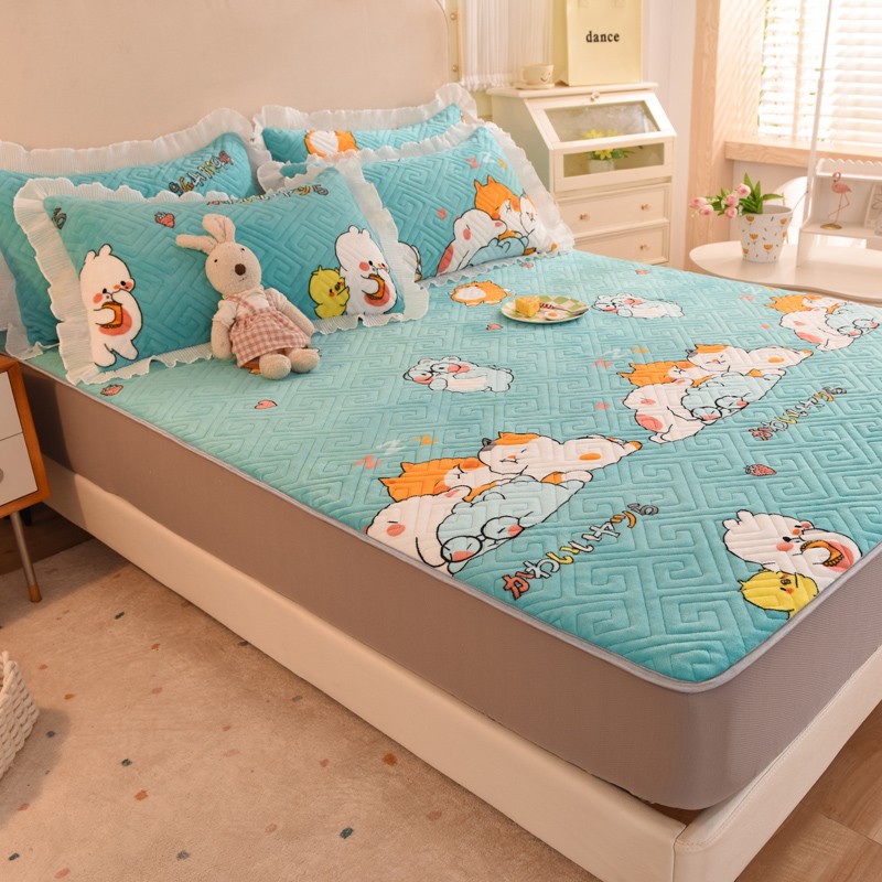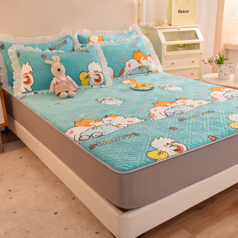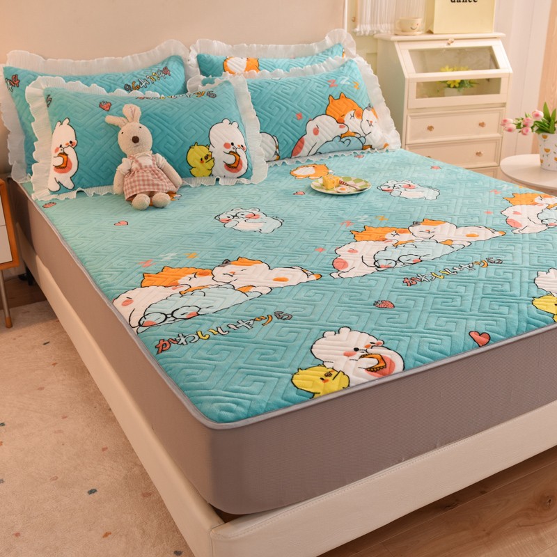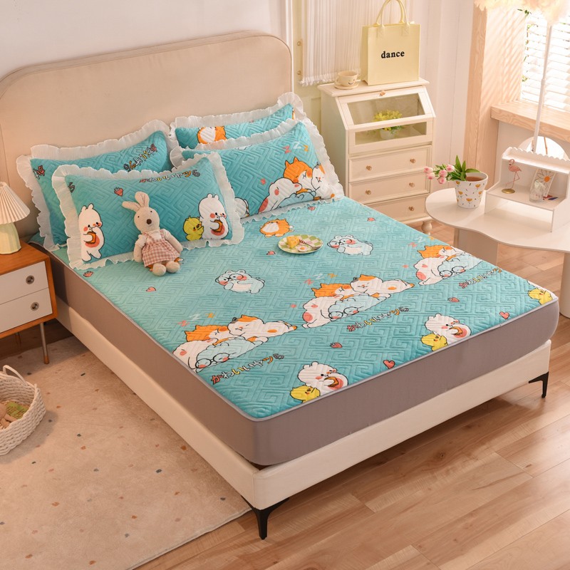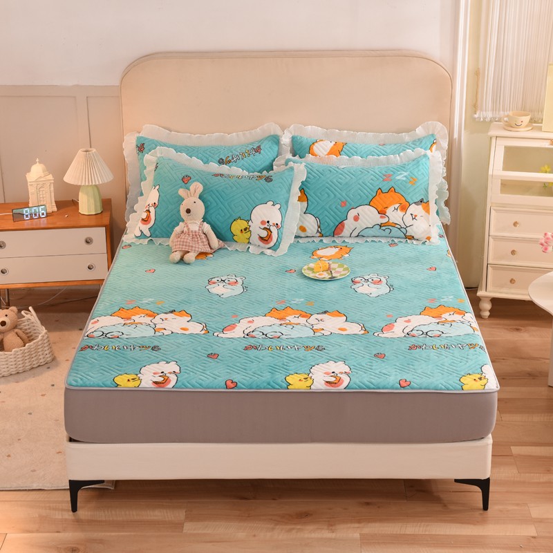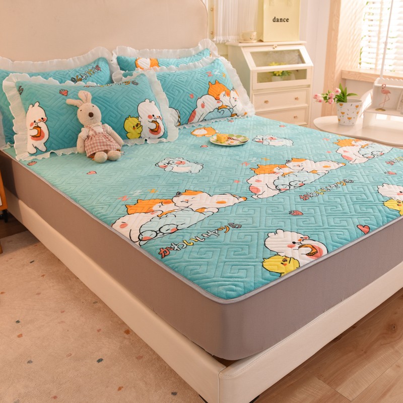 商品名称:甜之梦 2025新款牛奶绒印花夹棉花边系列单品床笠 乖乖熊