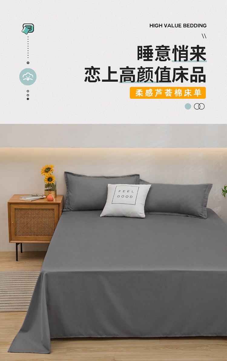 商品名称:馨乐家纺 2025新款纯色舒适亲肤芦荟棉-床单 灰色