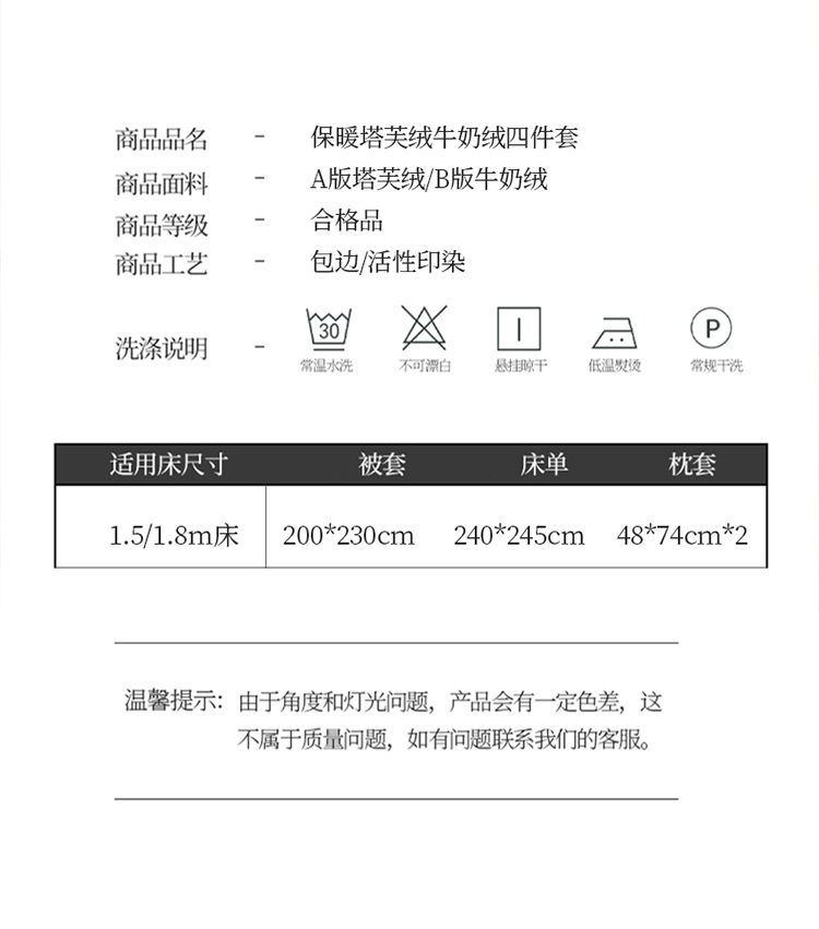 商品名称:仟网汇 2022新款塔芙绒牛奶绒四件套 香芋紫