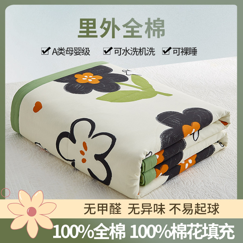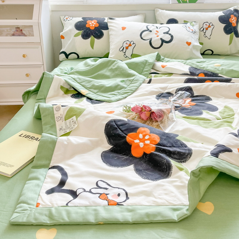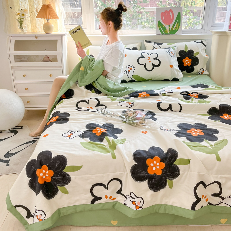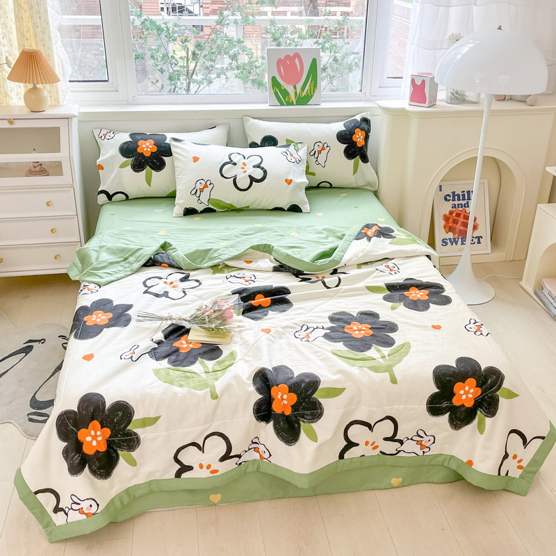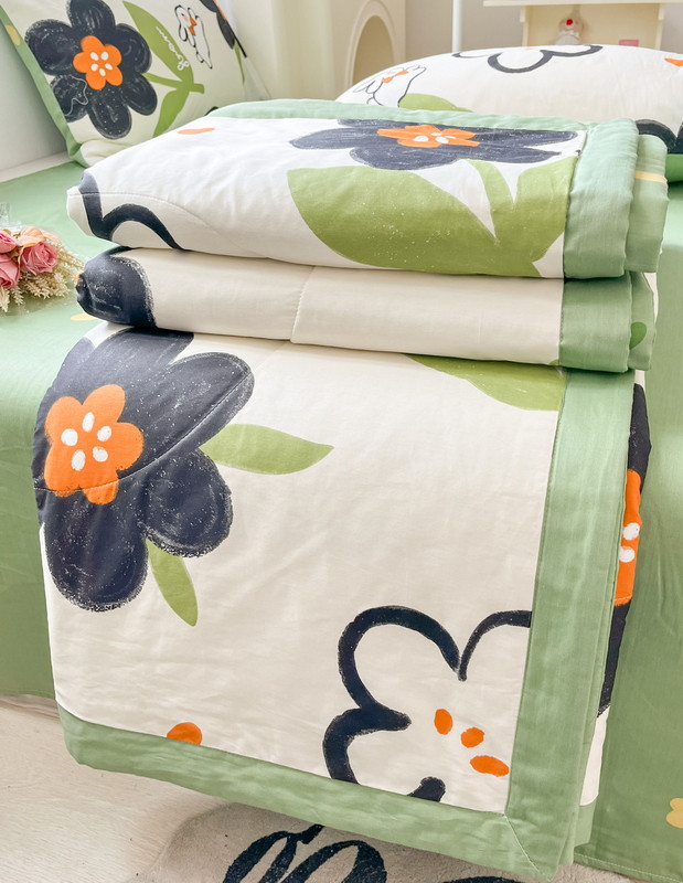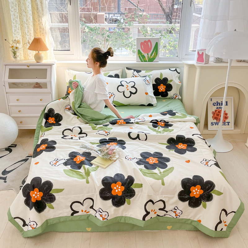 • 91家纺网 家纺一手货源 找家纺 格子铺 2023新款全棉印花系列棉花夏被 优雅风情