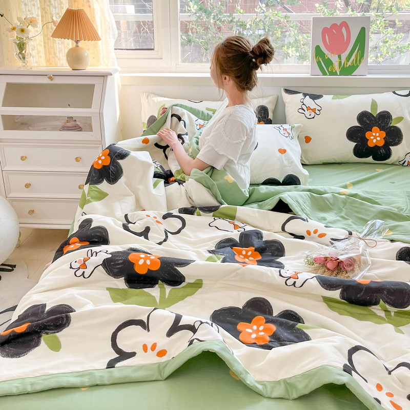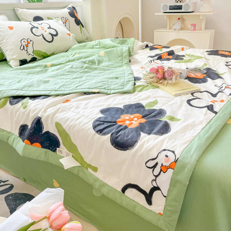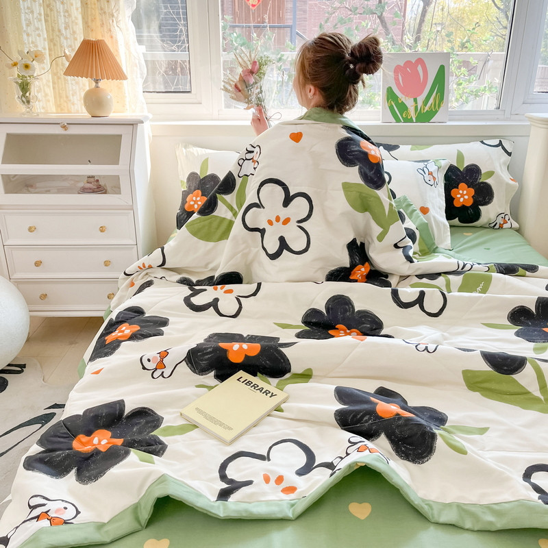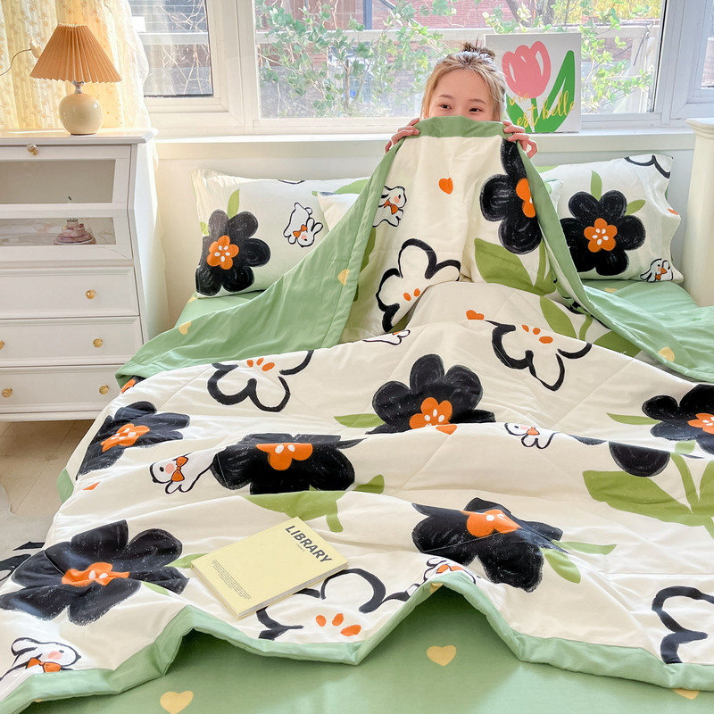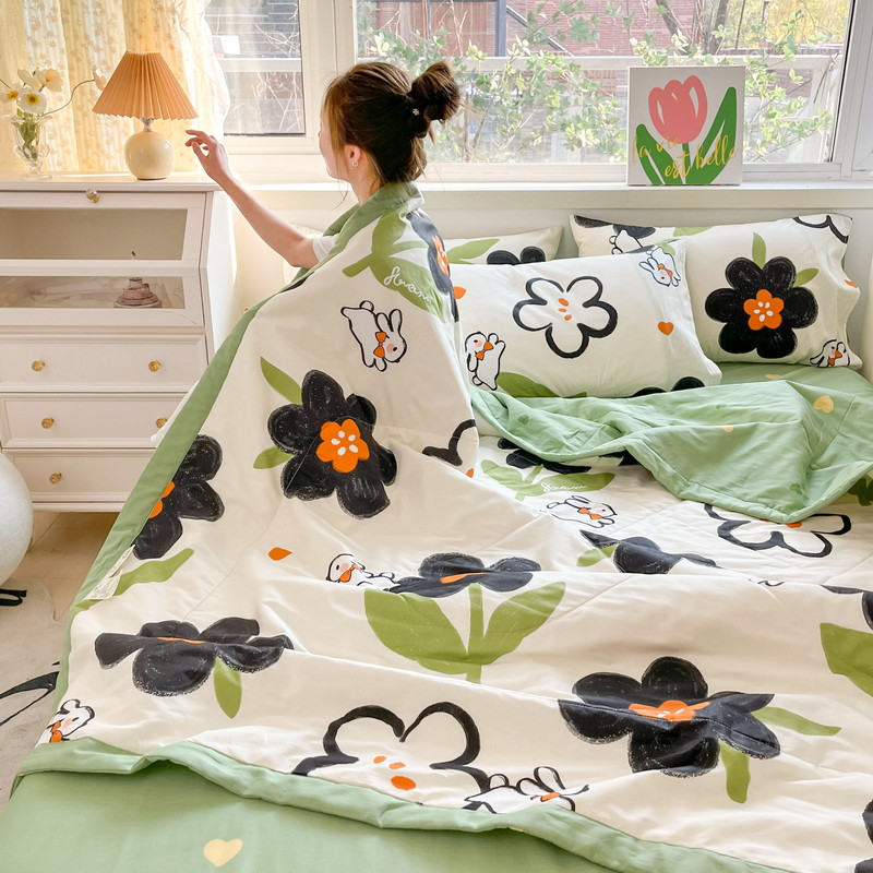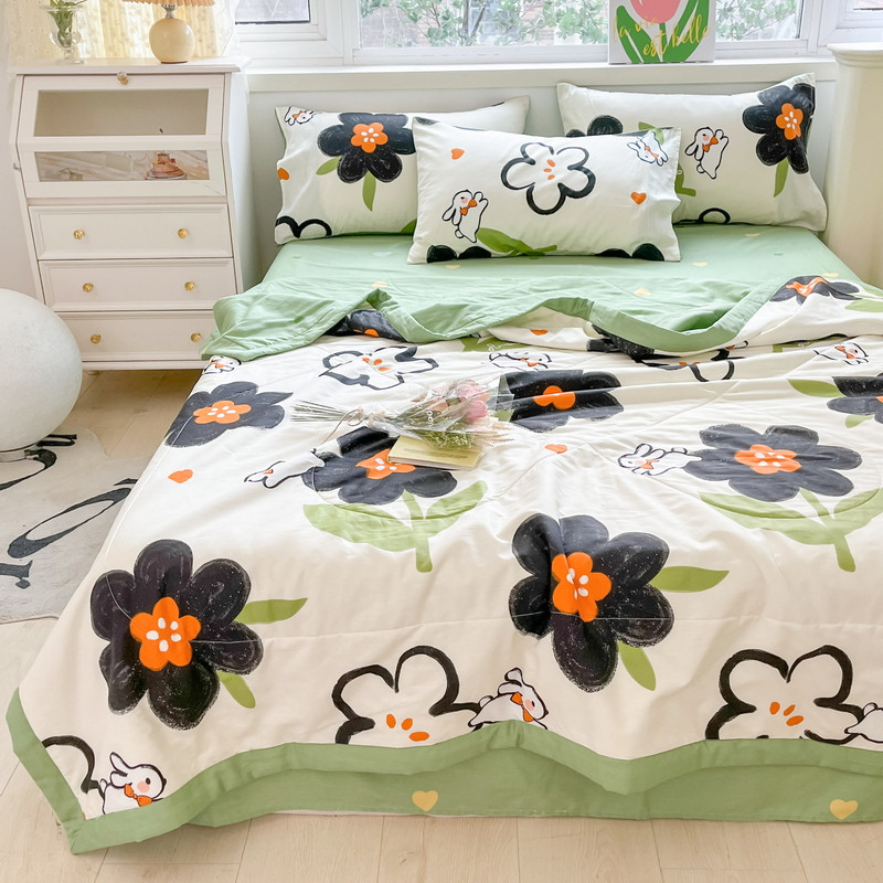 • 91家纺网 家纺一手货源 找家纺 格子铺 2023新款全棉印花系列棉花夏被 优雅风情