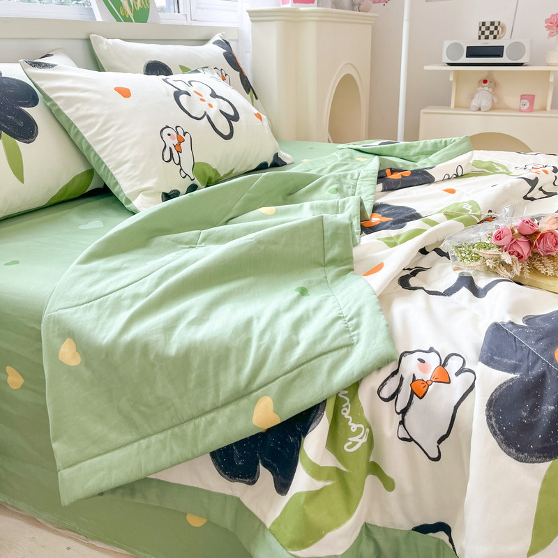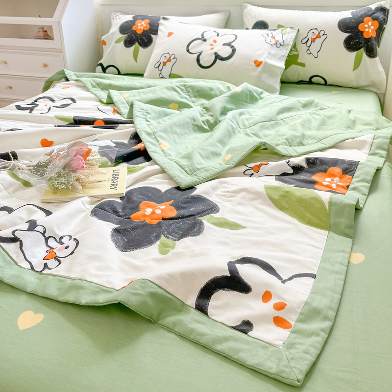 格子铺2024新款纯色全棉水洗棉棉花夏被 豆绿,豆绿