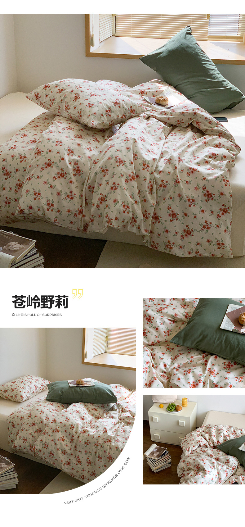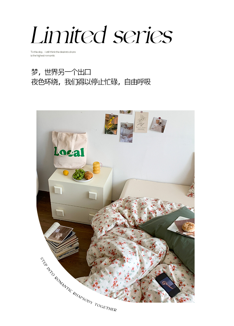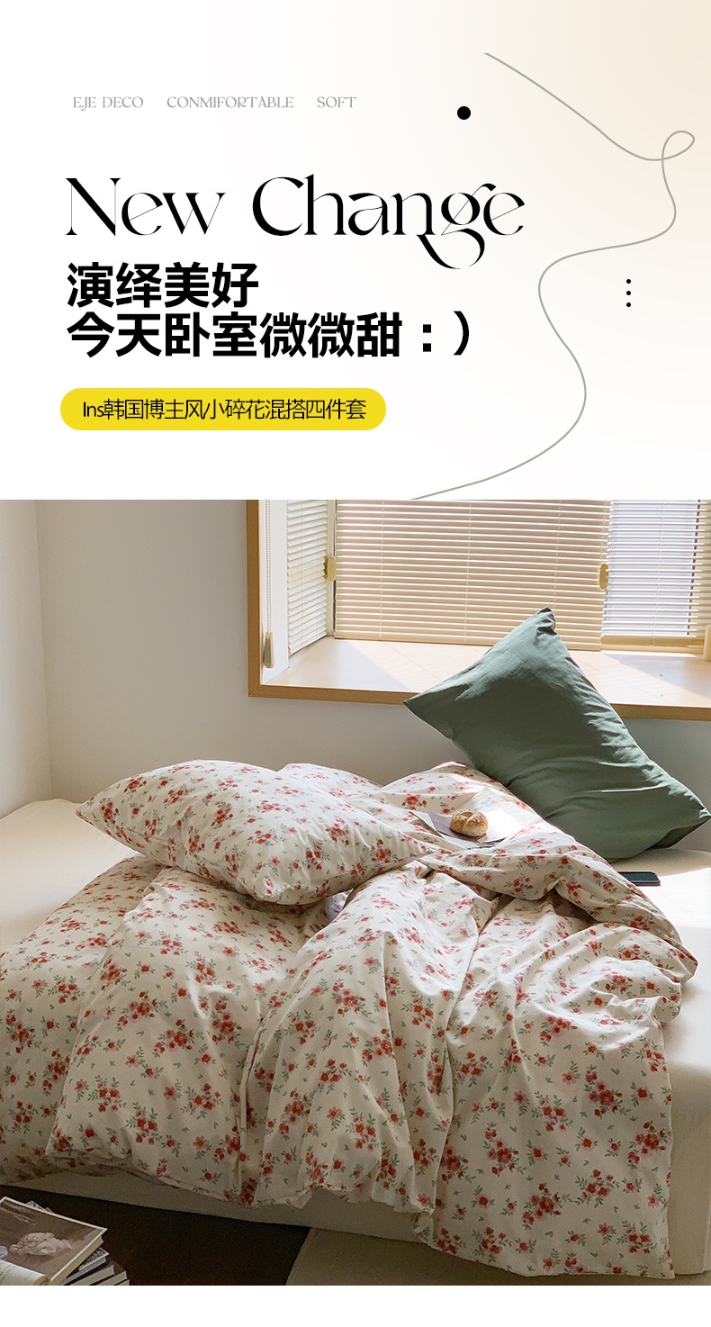 当前位置: 91家纺网 > 商品网购 > 床品套件 > 四件套 > 全棉普通四件套 > 六巷胡同 2023新款ins韩国博主风小碎花混搭四件套 苍岭野莉