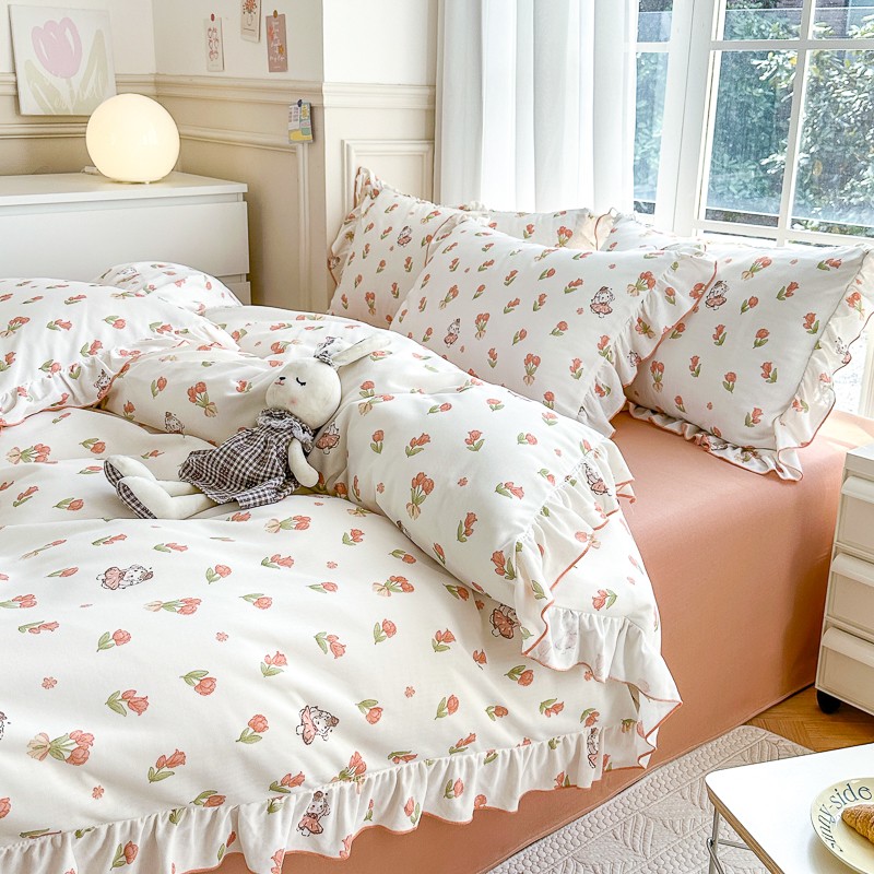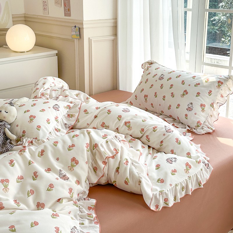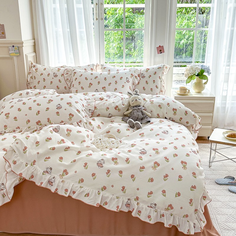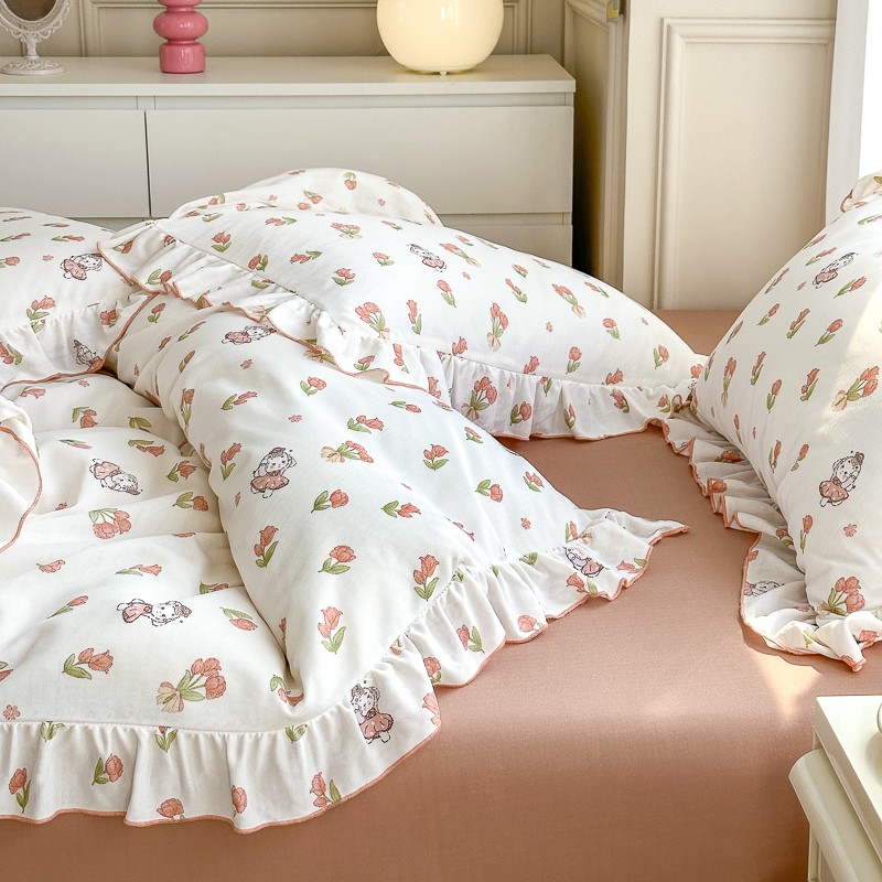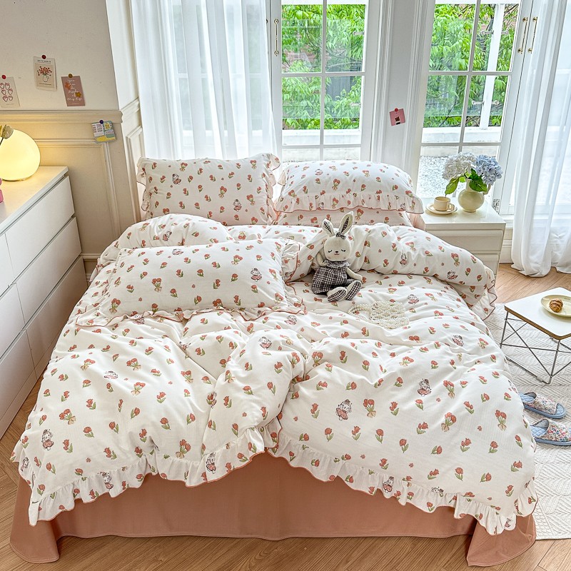 仟网汇 2023新款有氧双层纱韩版四件套 韩版-森屿少女