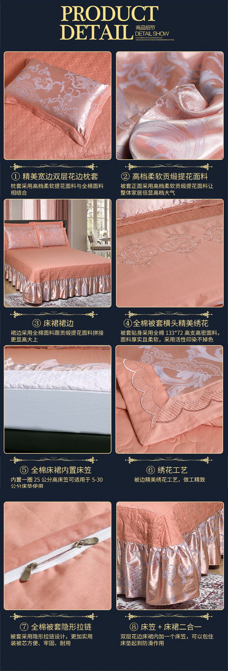 (总)福丽莱家纺 2023新款贡缎提花床裙四件套(夹棉),玛格丽特-金兰,艾莫-玉豆沙,艾薇尔-香槟,爱的约定-香槟玉,安格斯尔-蓝灰,奥斯卡-香槟粉,典范欧风-蓝灰,朵朵花语-砖红,花团锦簇-粉玉,花团锦簇-银灰,花香情缘-粉,花逸芳心-豆沙,花资风韵-浅紫,锦绣花开-金色,静待花开-金色,克里斯娜-银灰,克罗丽莎-金色,琳尚-珊瑚粉,玫瑰风情-大红,密语-雪青,名门世家-银灰,摩歌娜-香槟紫,浓情花梦-雪青,暖心芳妍-大红,千娇百媚-金色,浅芳菲-粉紫,乔安迪-粉,情梦花逸-粉玉,喜瑞祥和-大红,喜上眉梢-砖红,幽香-紫罗兰,悦动旋律-杏兰,黛菲尔兰驼,粉妆伊人浅粉,华庭盛典-豆沙
