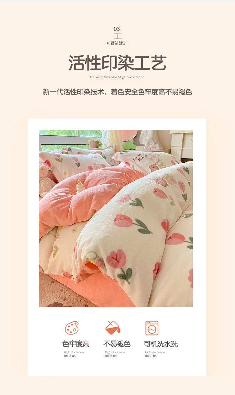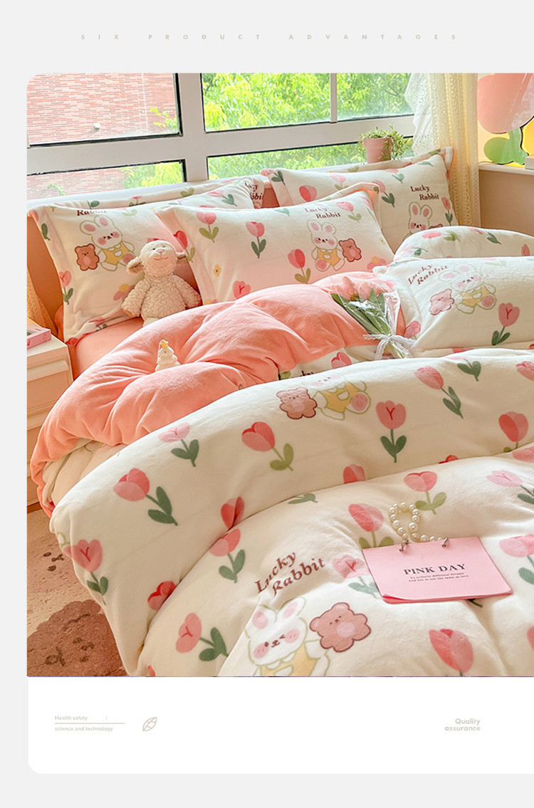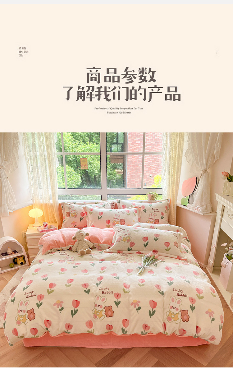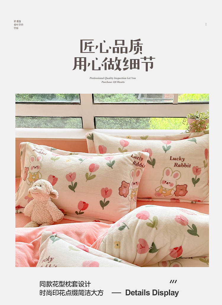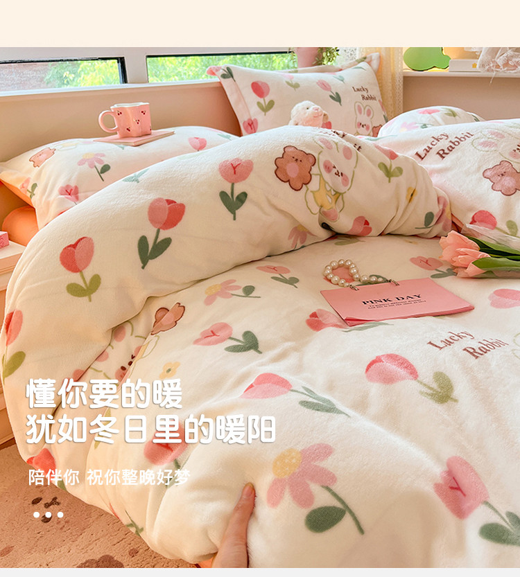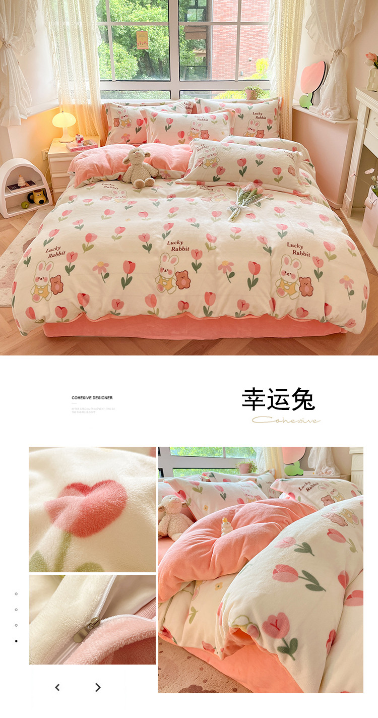 商品名称:沐棉 2023新款牛奶绒印花+小清新四件套 幸运兔
